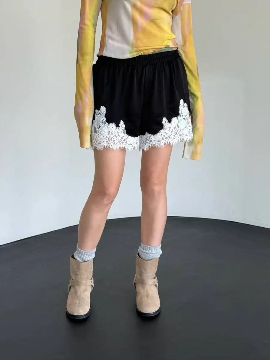 Шорты в пижамном стиле с надписью "Paris" в голубом цвете.