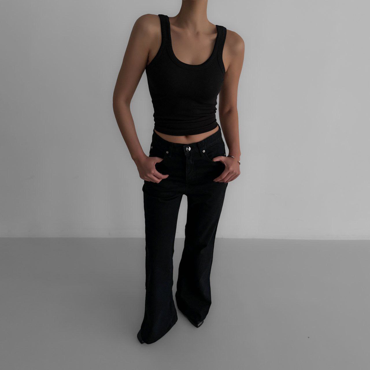 Майка-борцовка в черном цвете.
