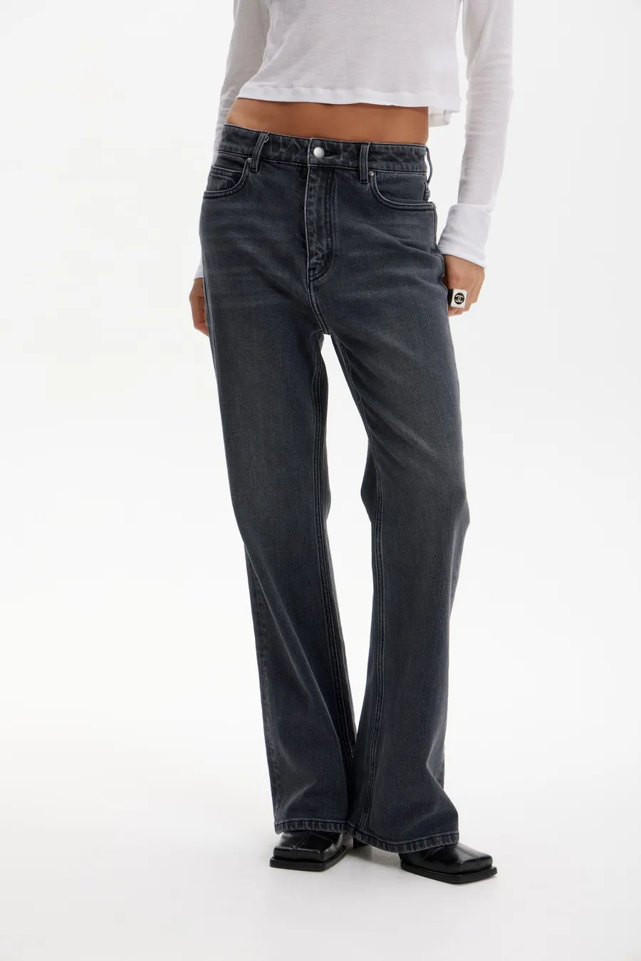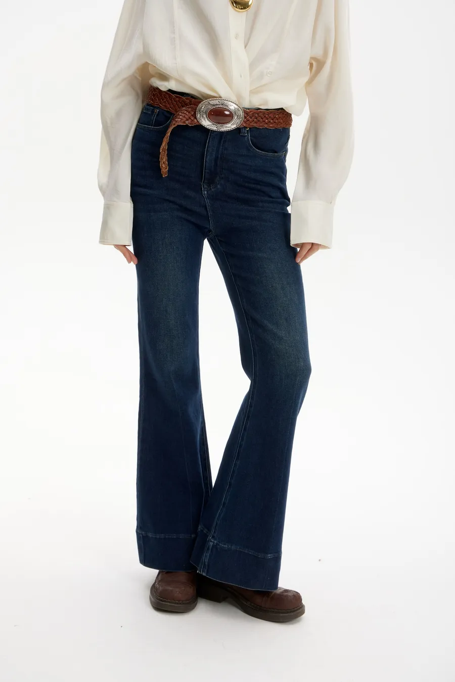 Джинсы в стиле oversize с косой в синем цвете.