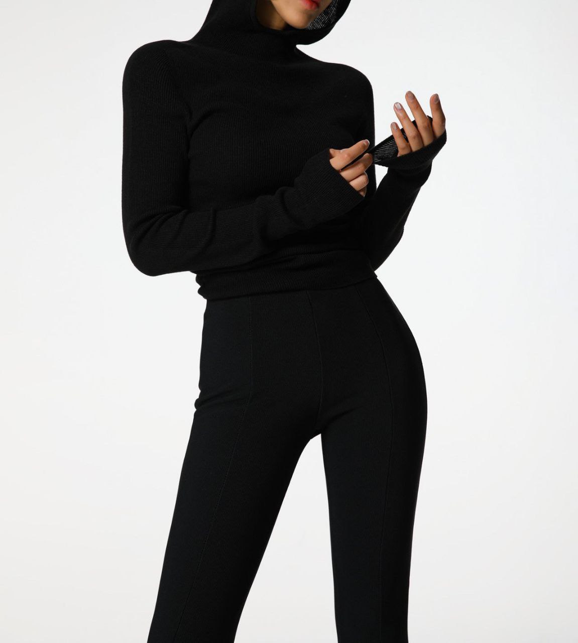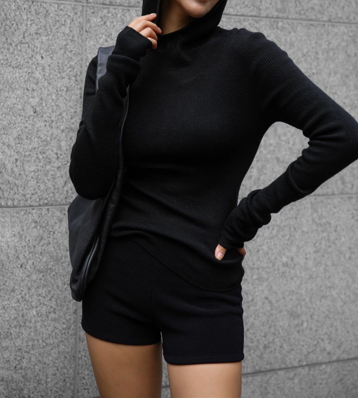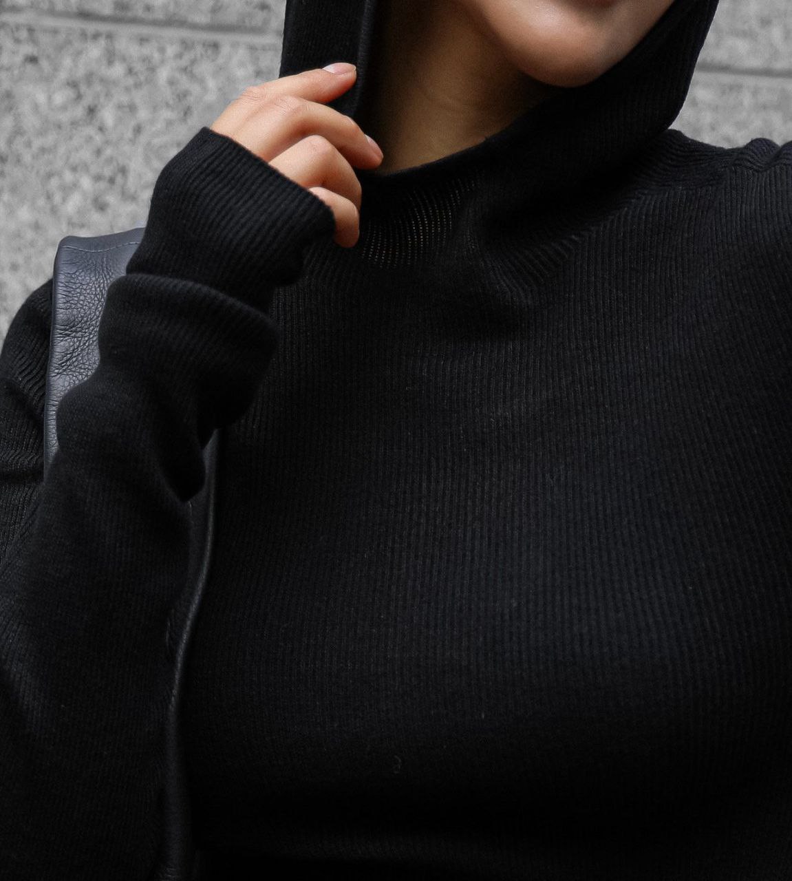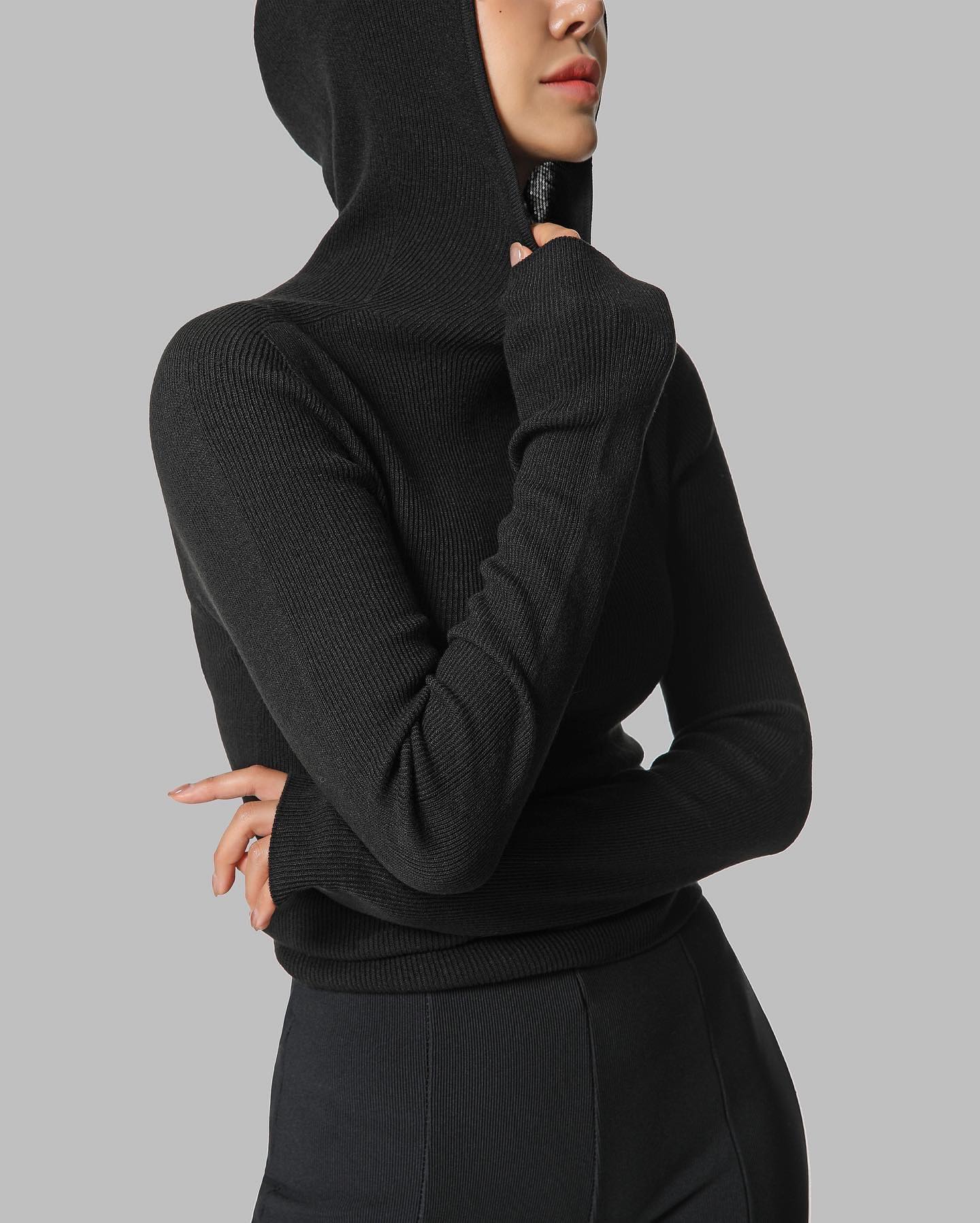 Лонгслив с капюшоном в черном цвете.