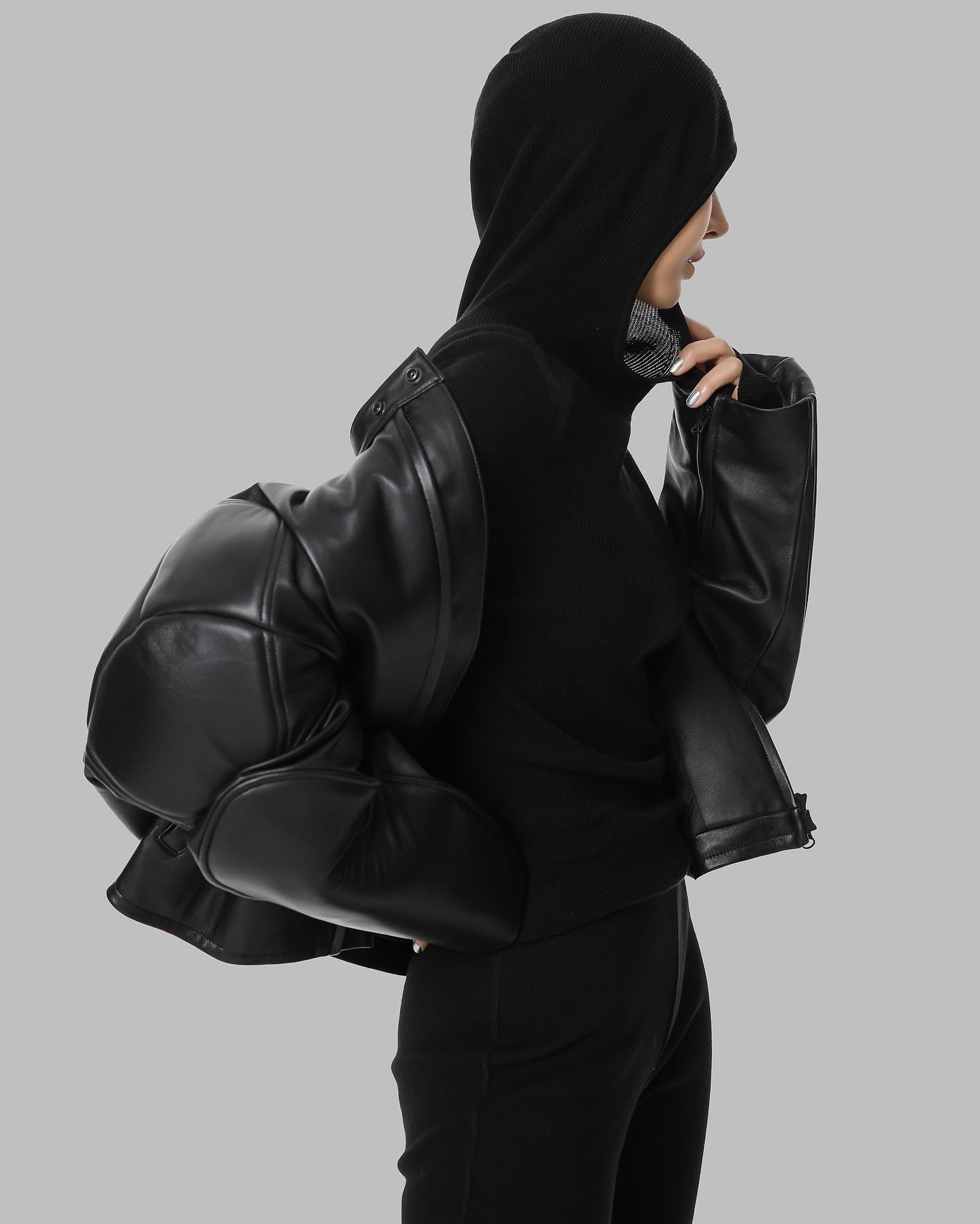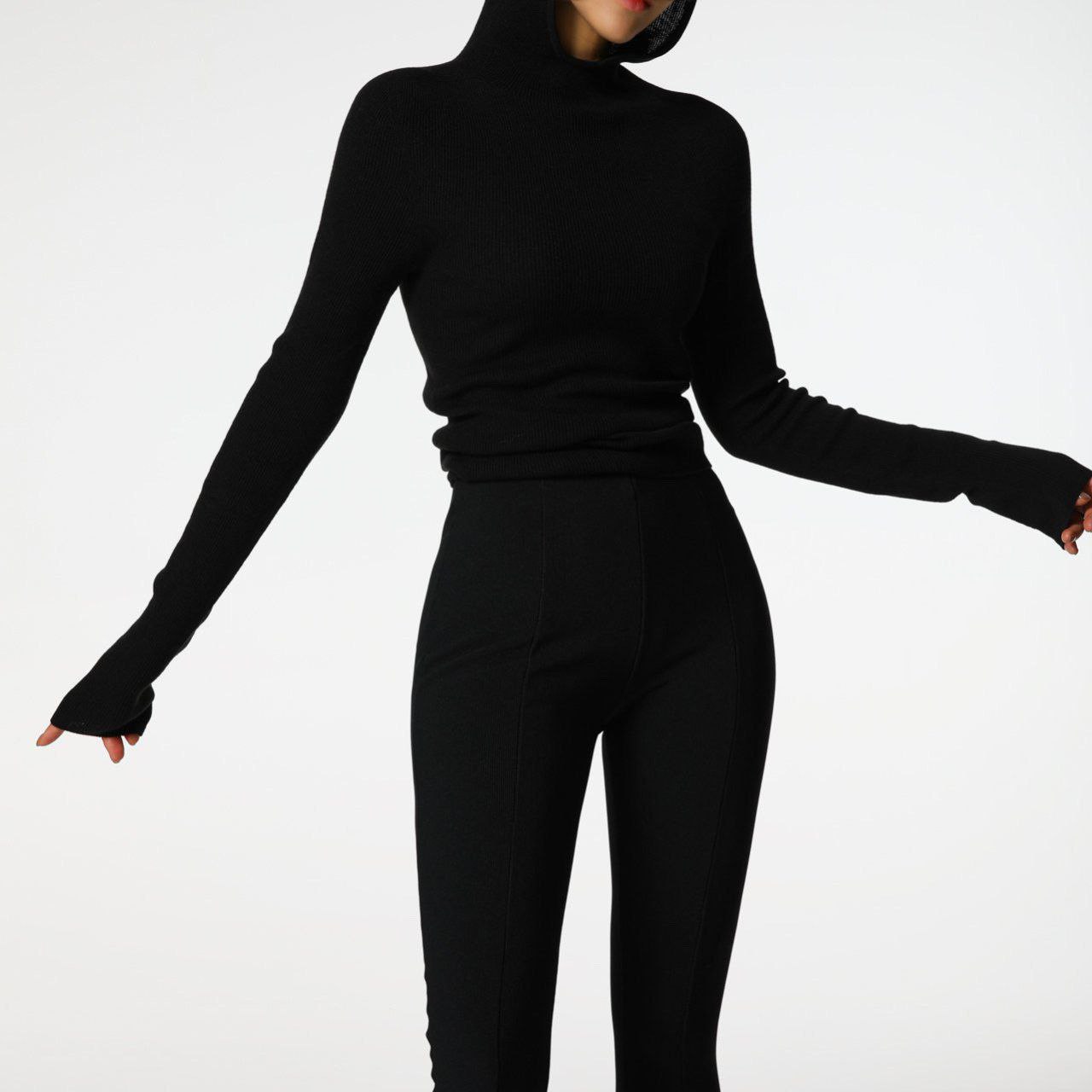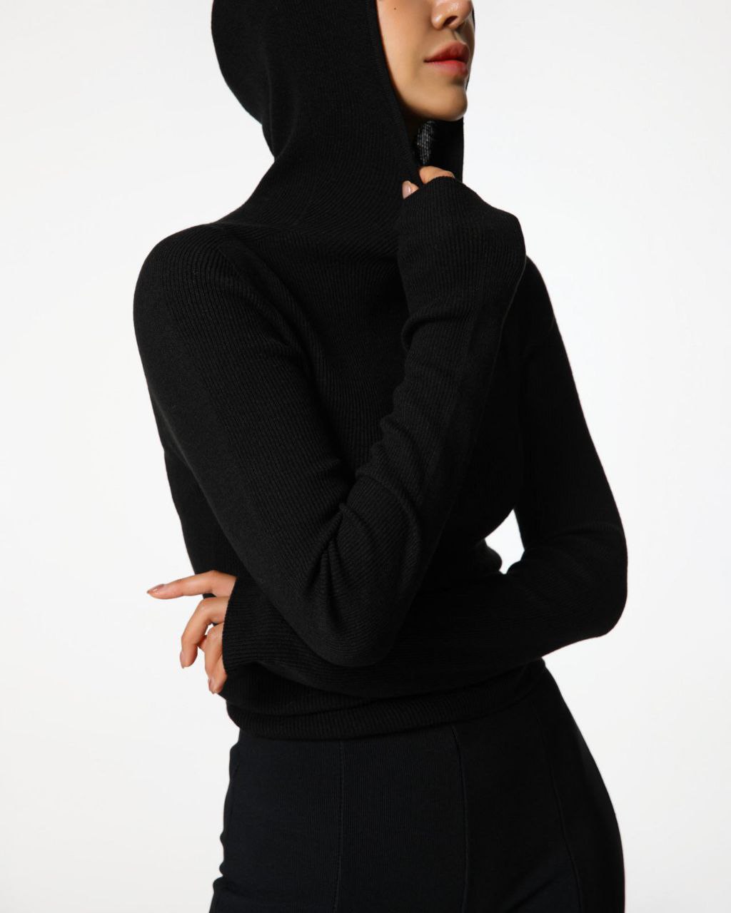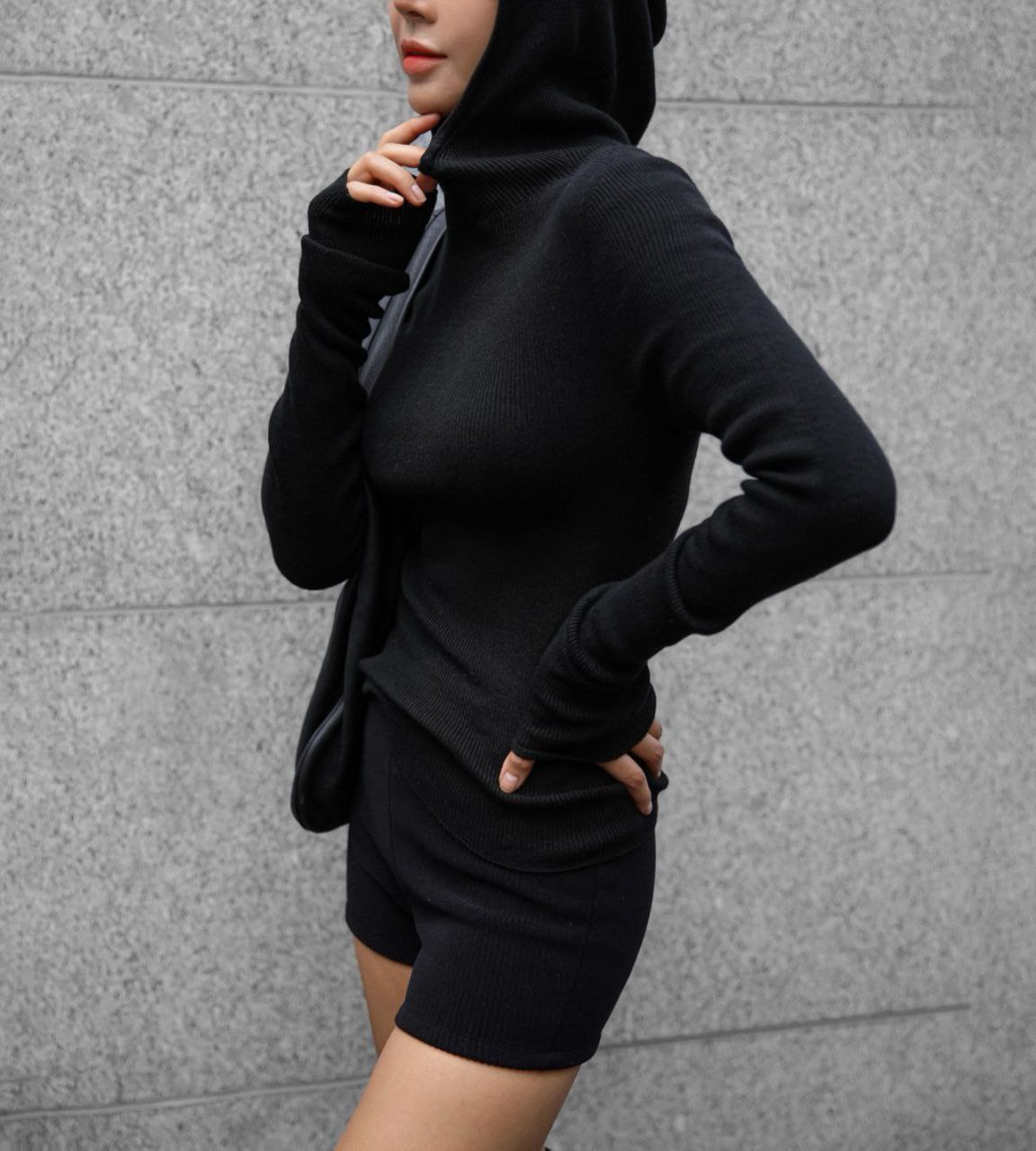 Лонгслив с капюшоном в черном цвете.