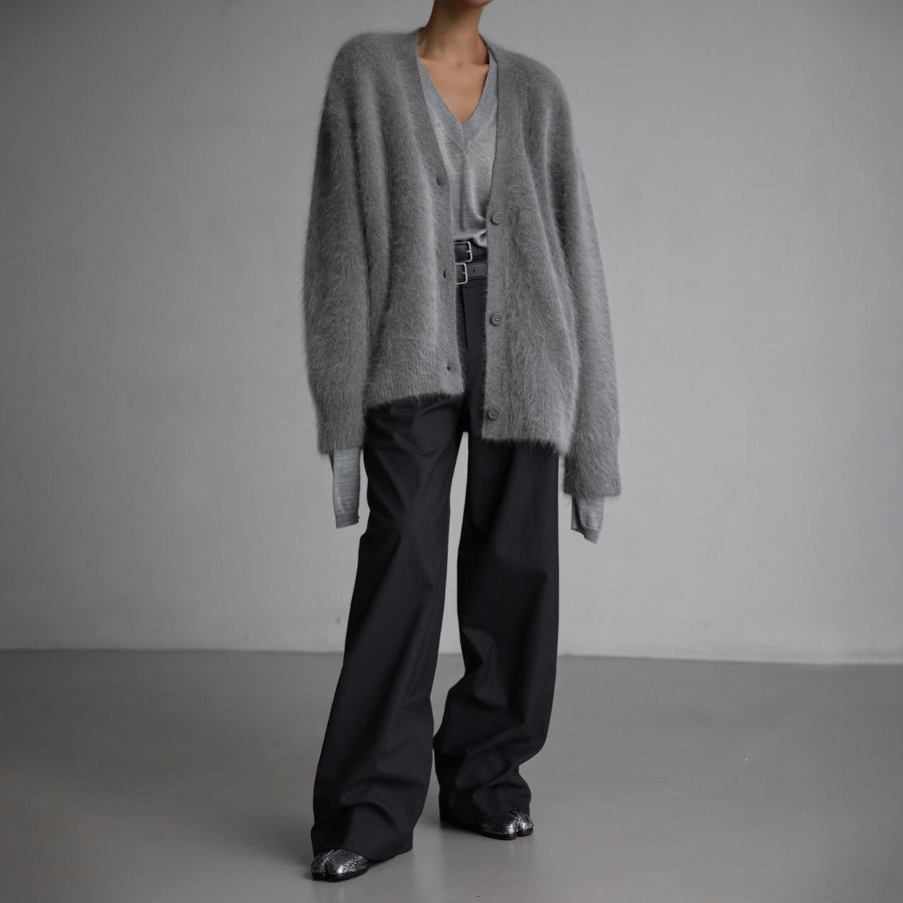 Кардиган из ангоры в графитовом цвете.