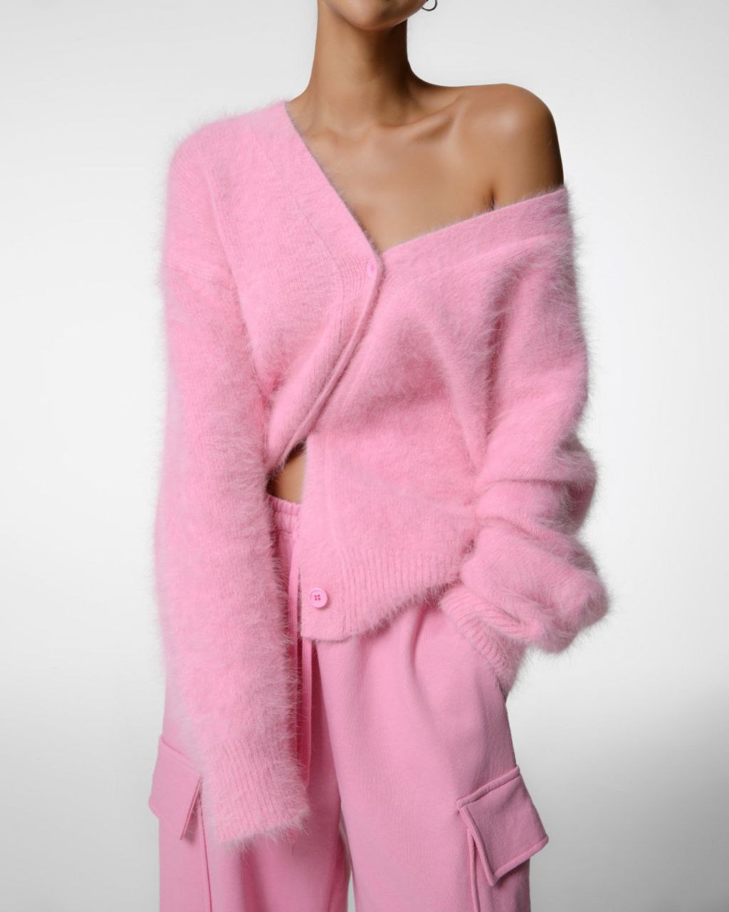 Кардиган из ангоры в розовом цвете.
