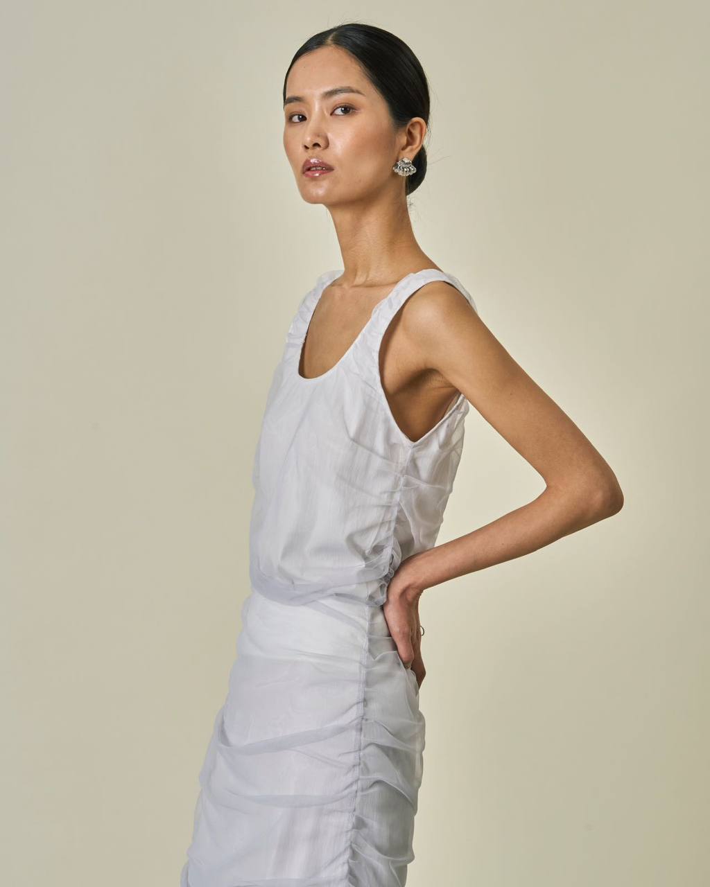 Топ с сеткой в белом цвете.