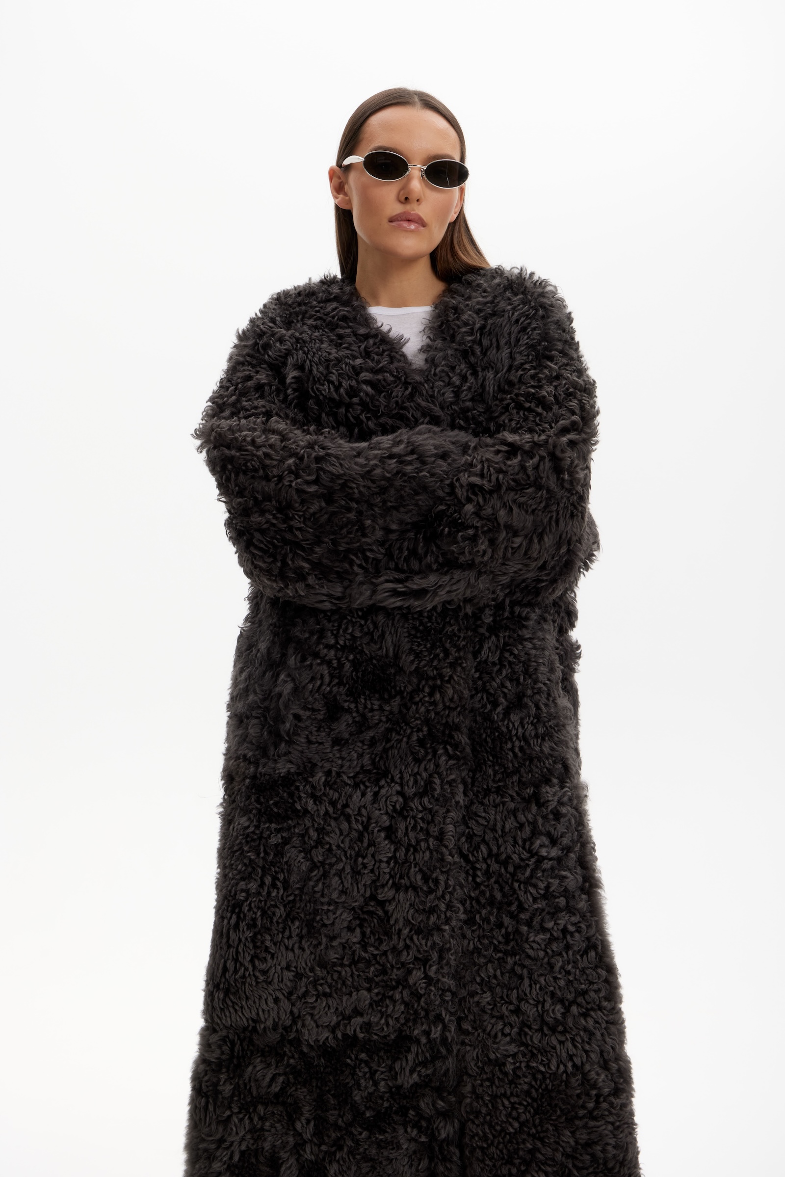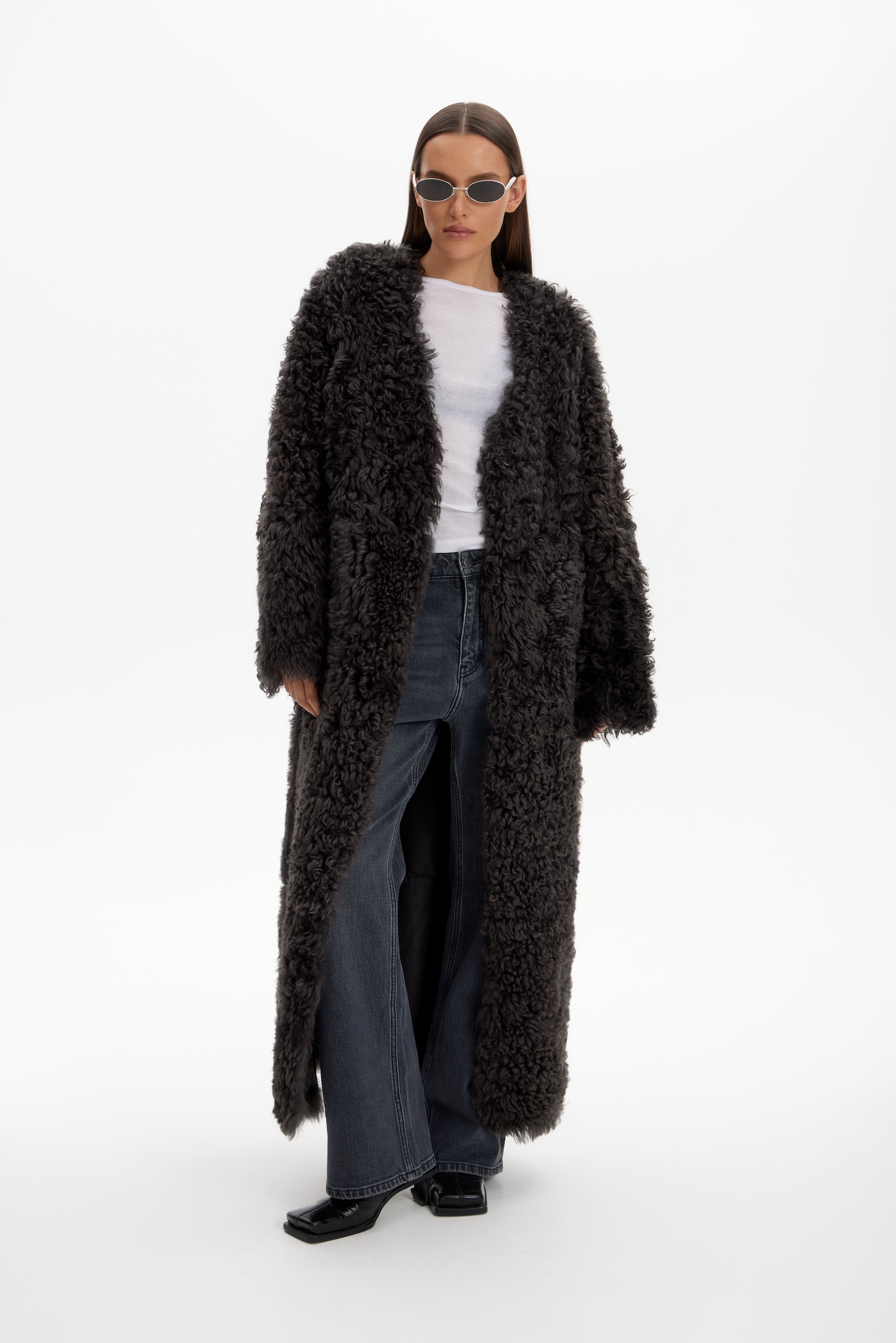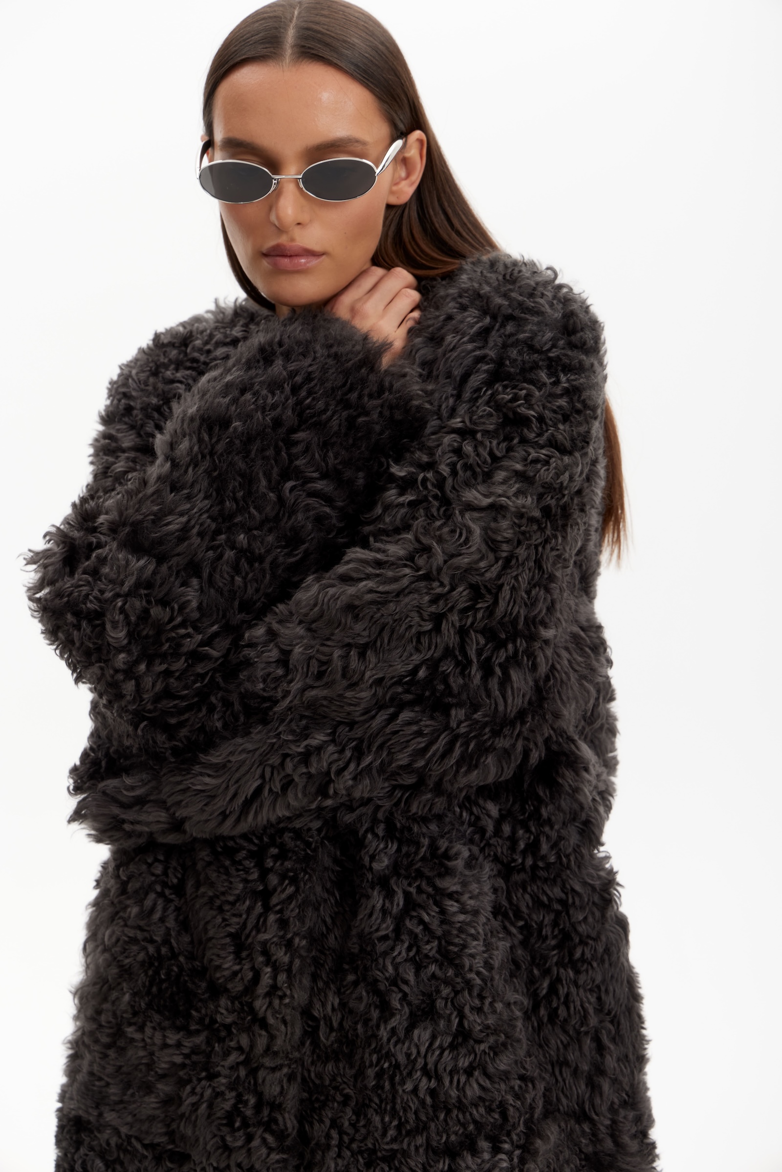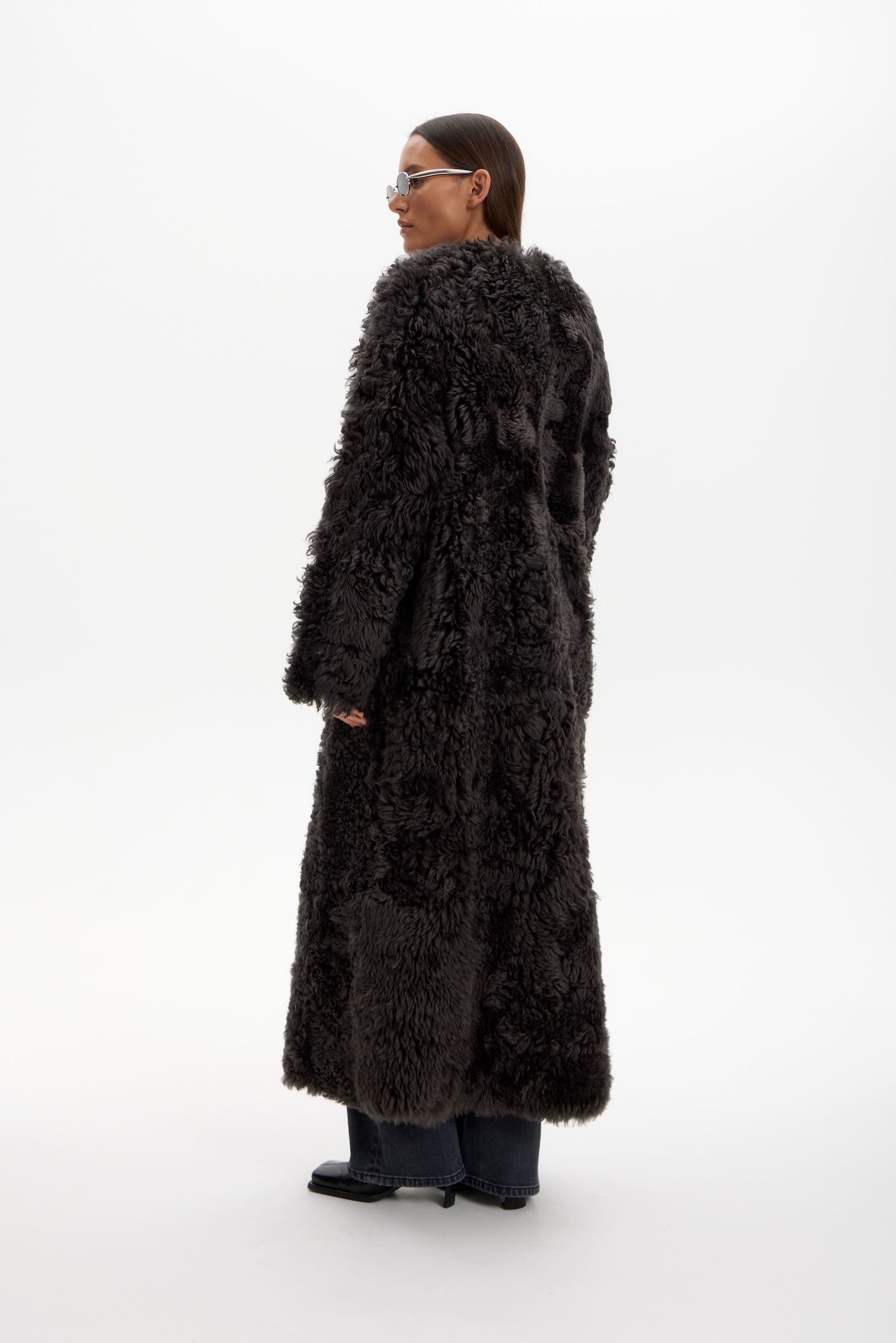 Дубленка двухсторонняя удлин. в графитовом цвете.