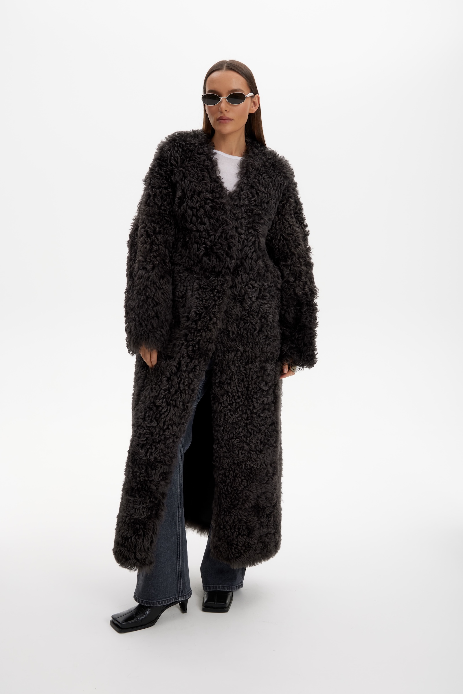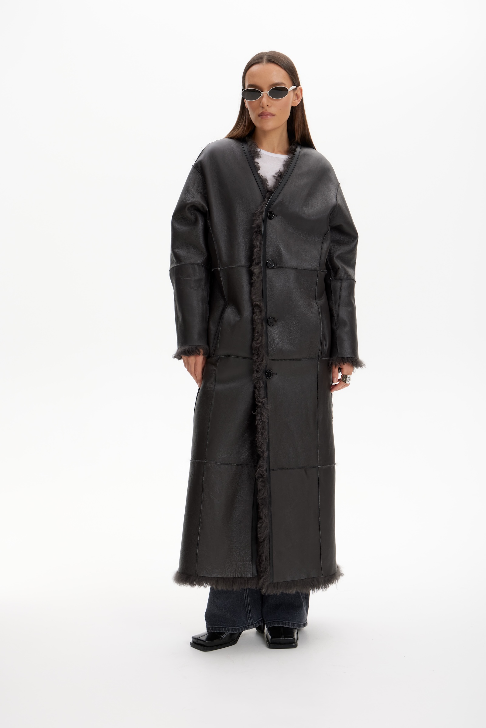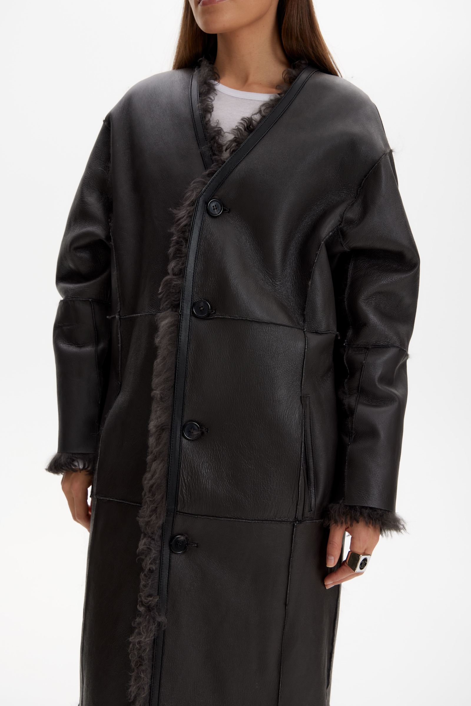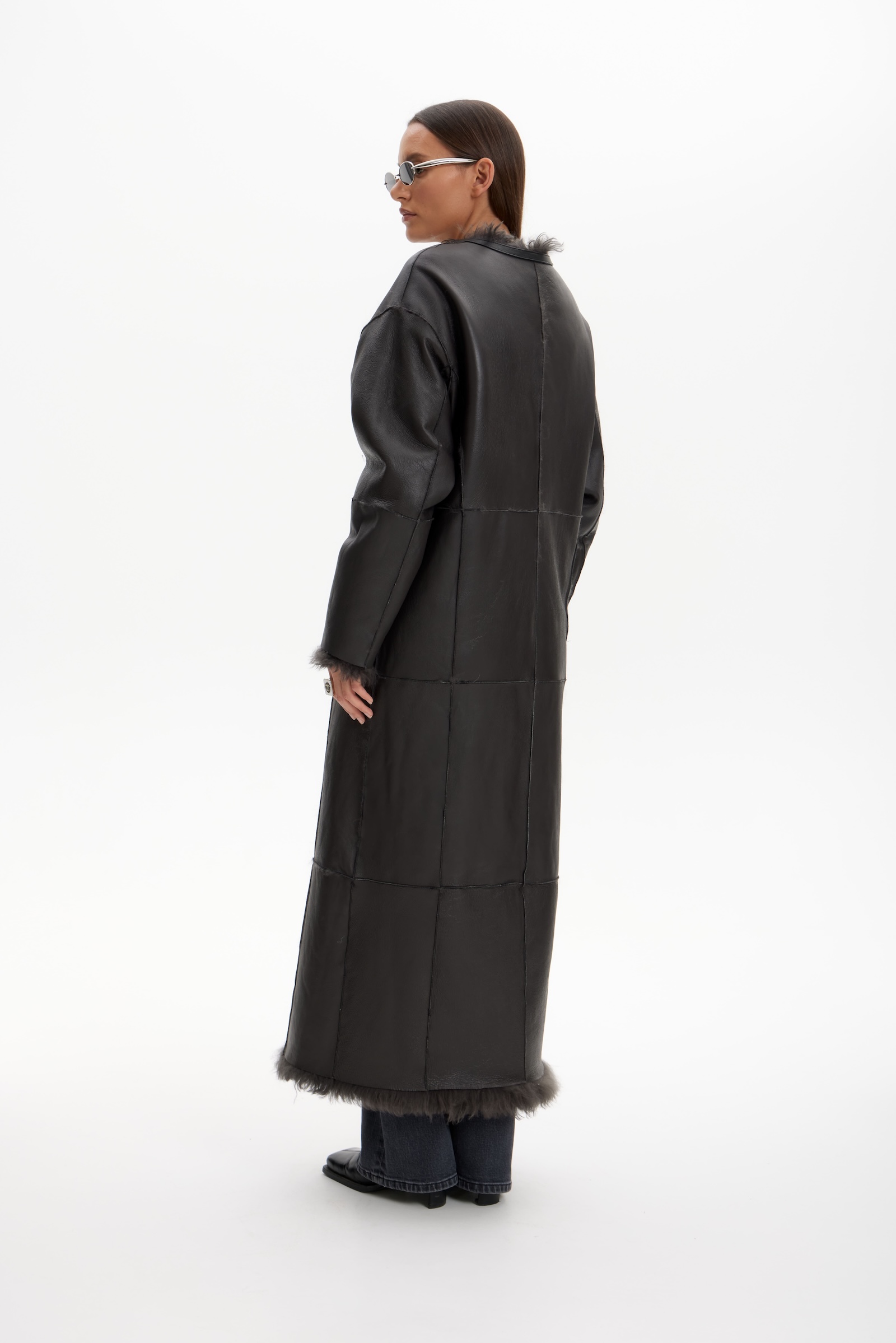 Дубленка двухсторонняя удлин. в графитовом цвете.