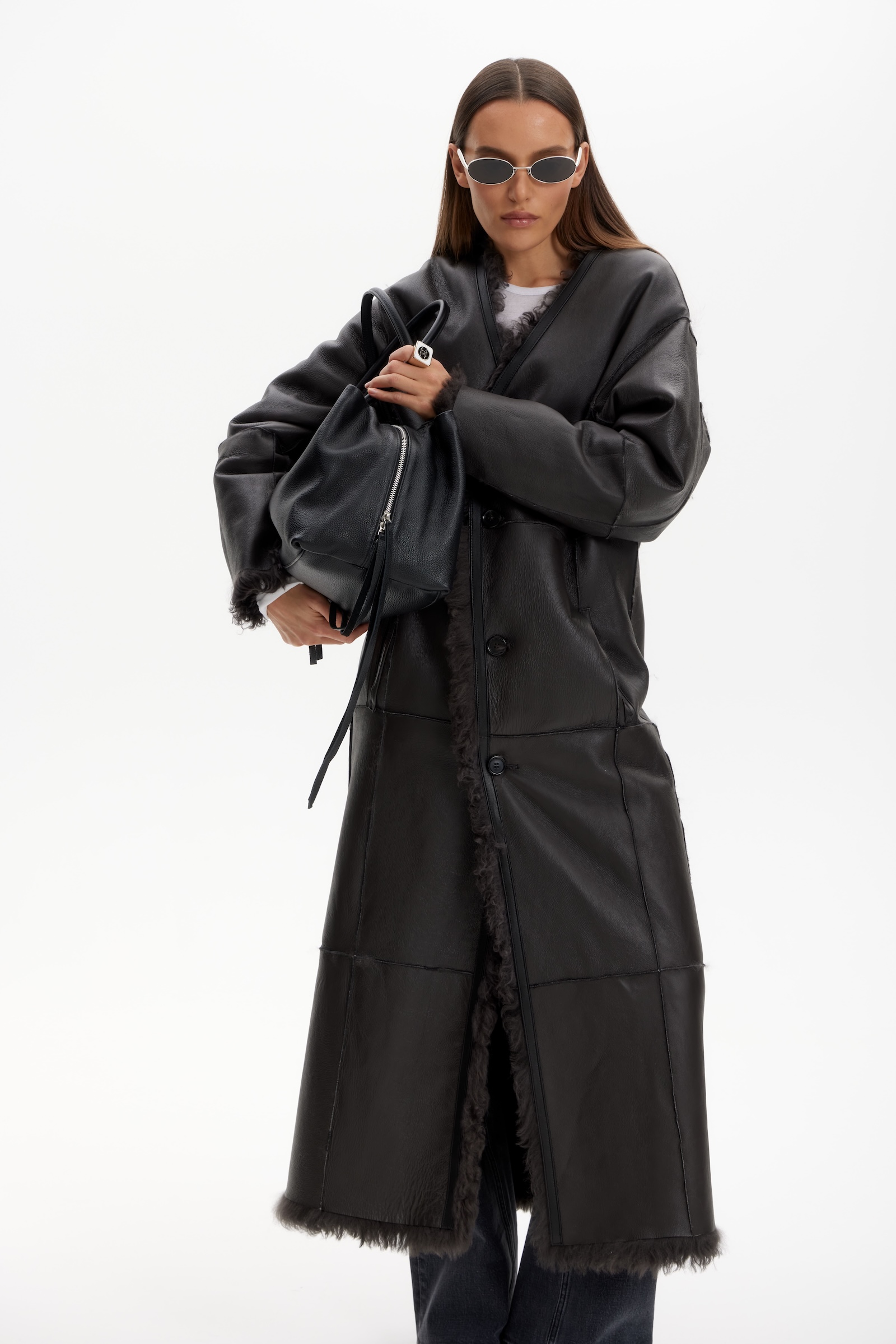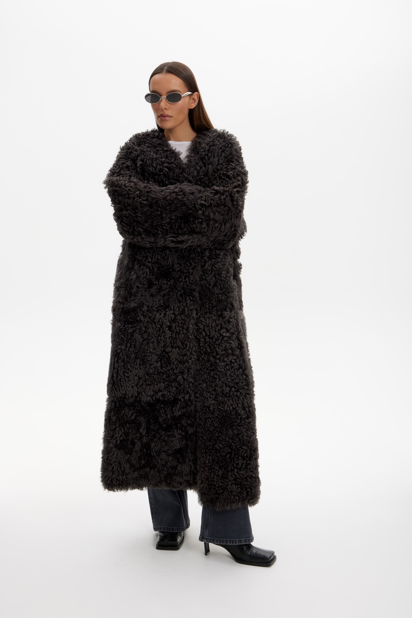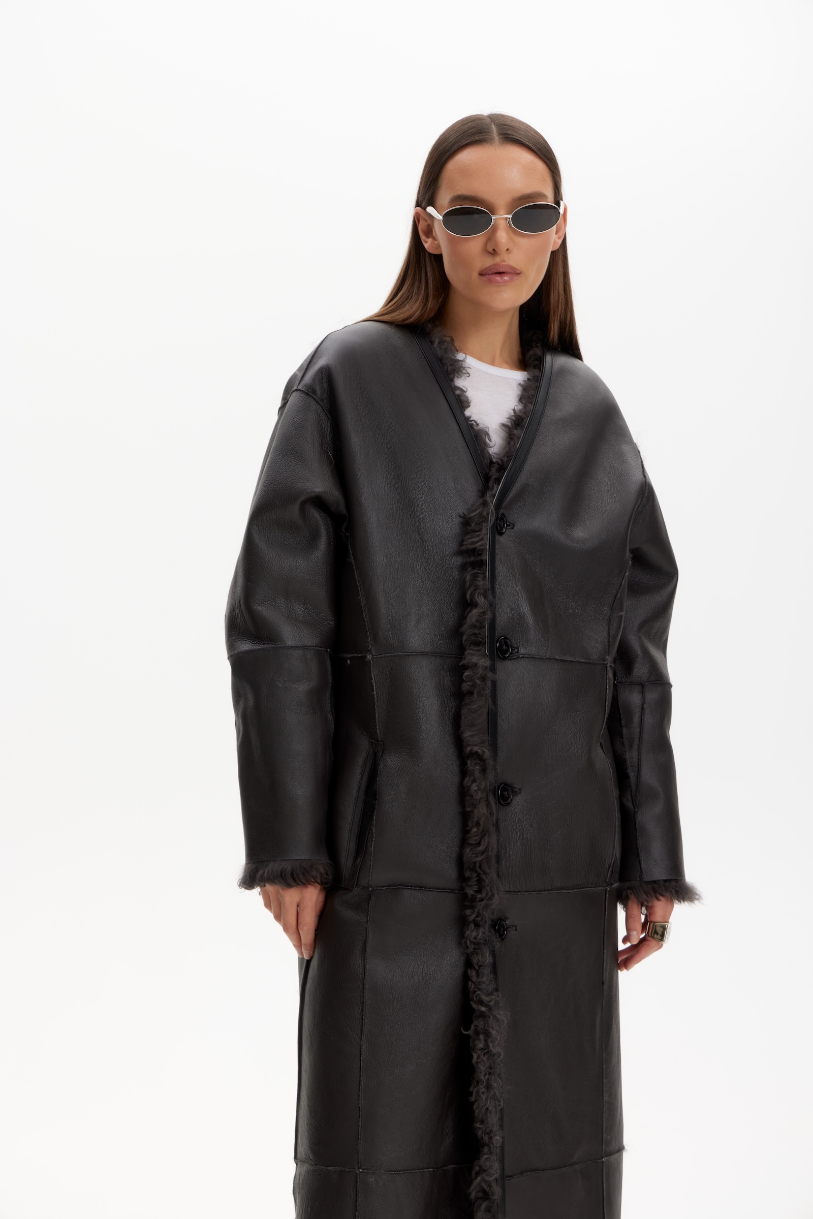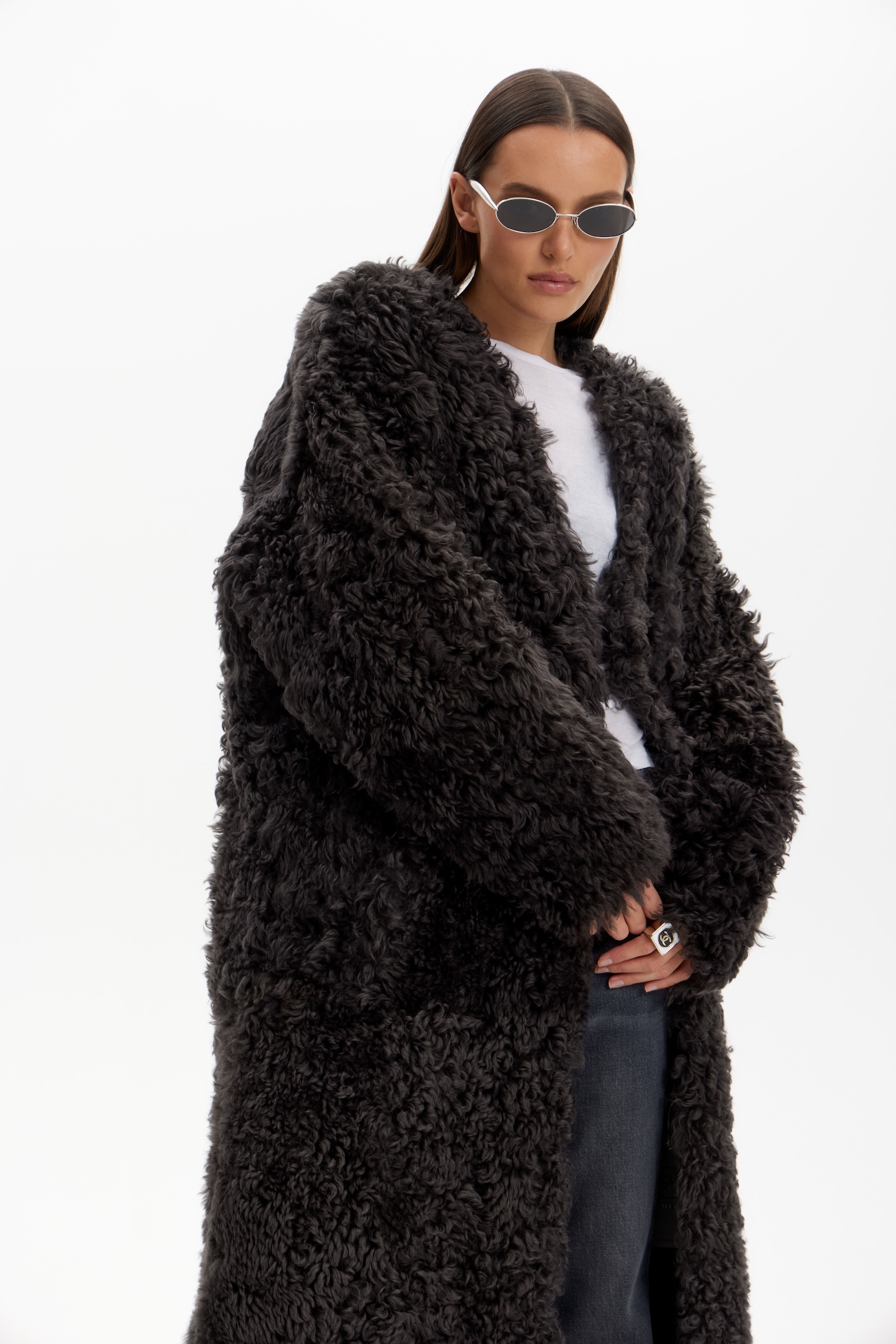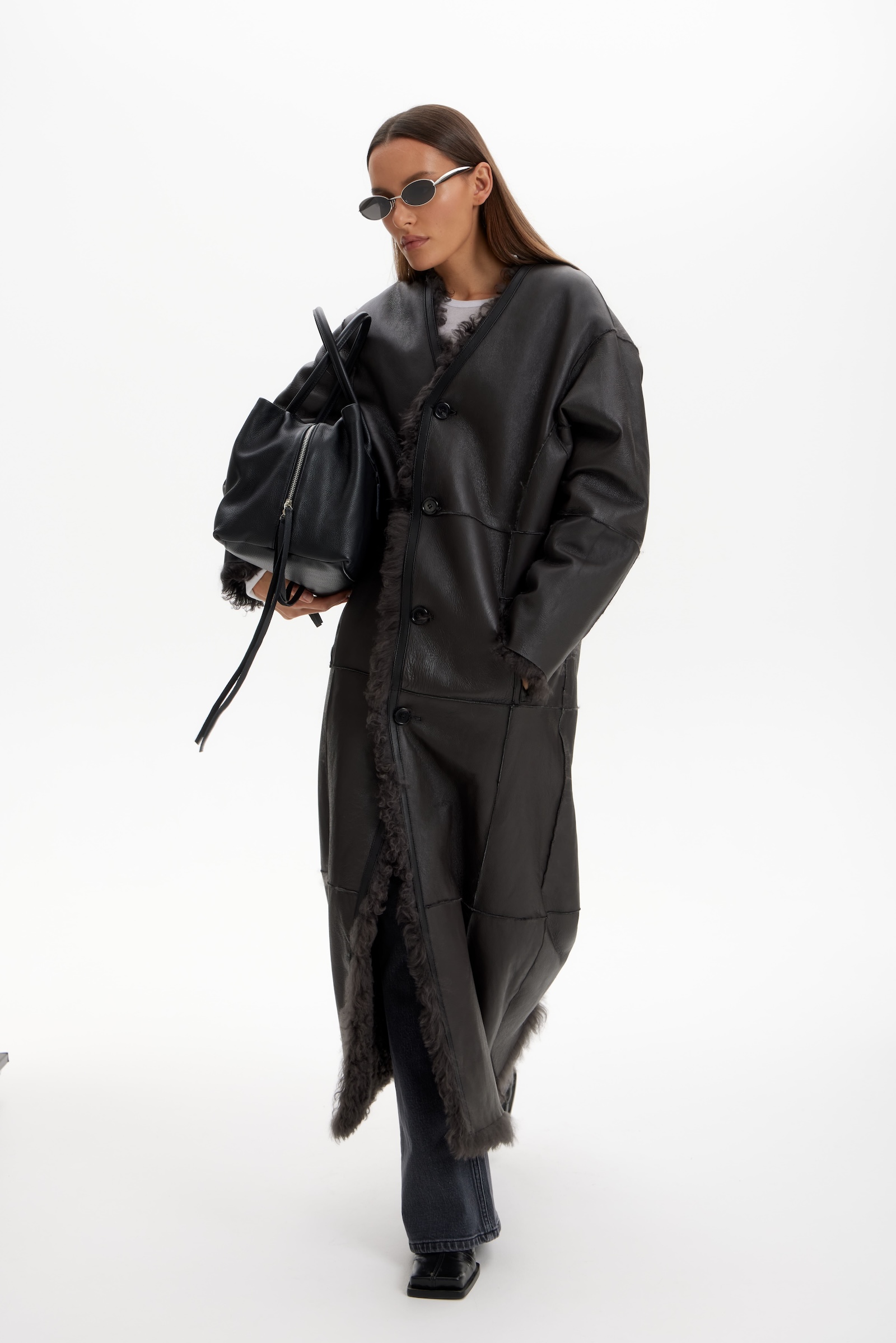 Дубленка двухсторонняя удлин. в графитовом цвете.