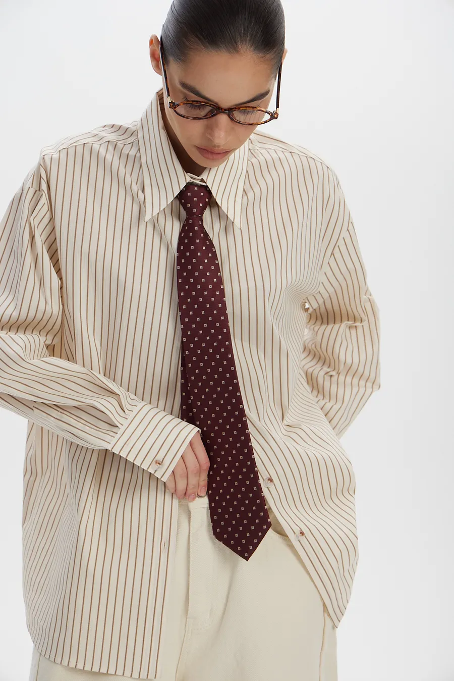 Рубашка в полоску с галстуком в голубом цвете.