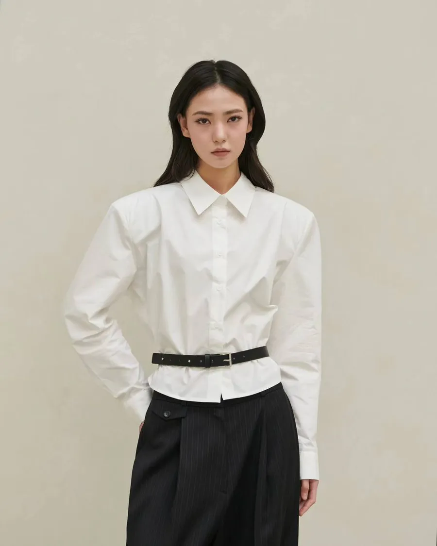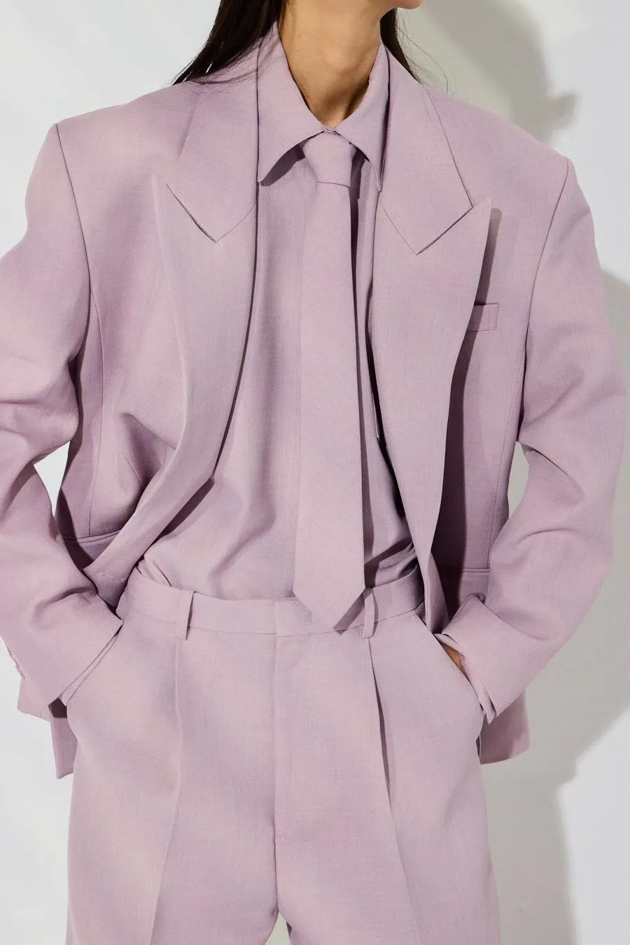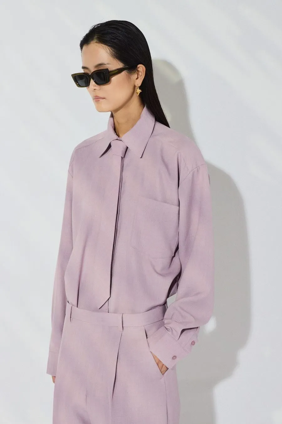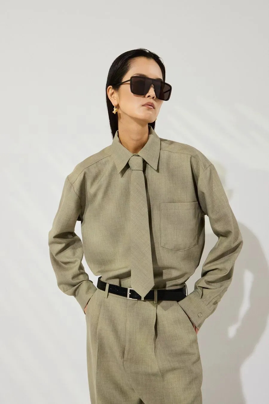 Рубашка в полоску с галстуком в бежевом цвете.