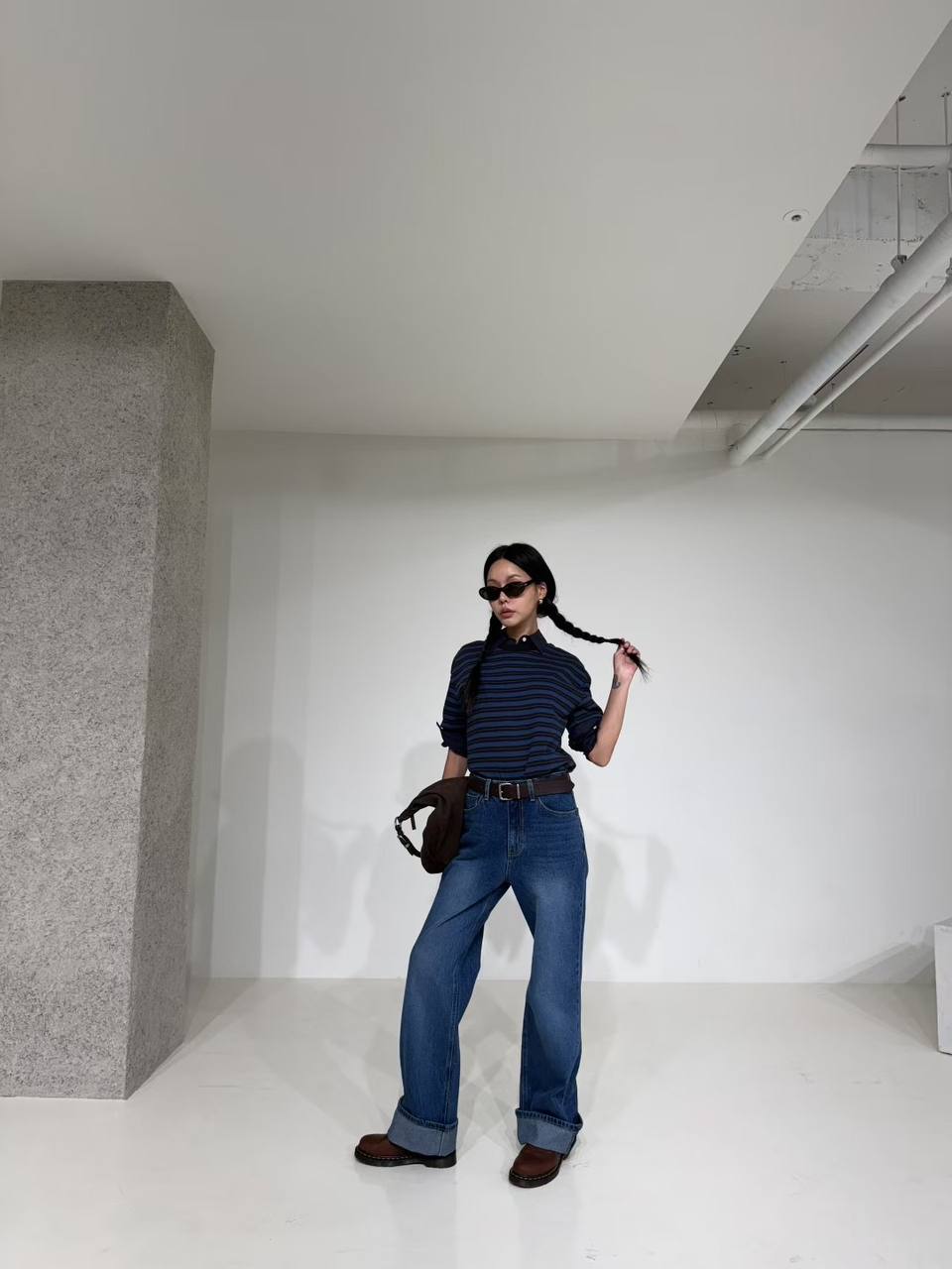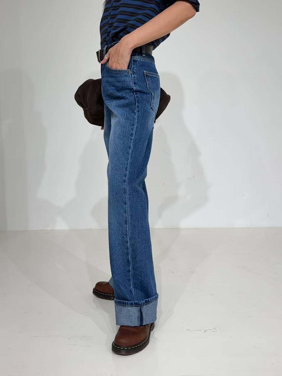 Джинсы с отворотом в синем цвете.