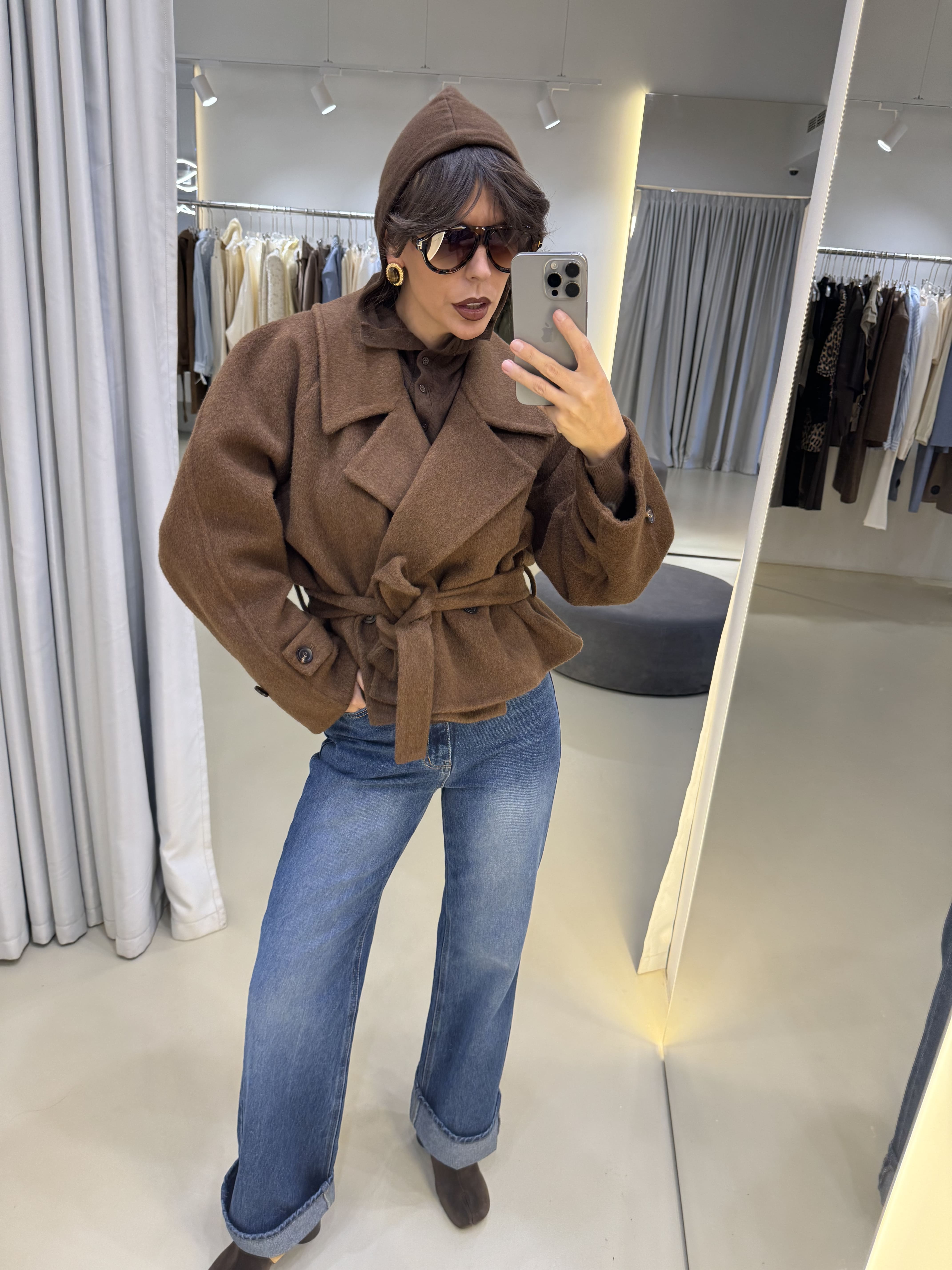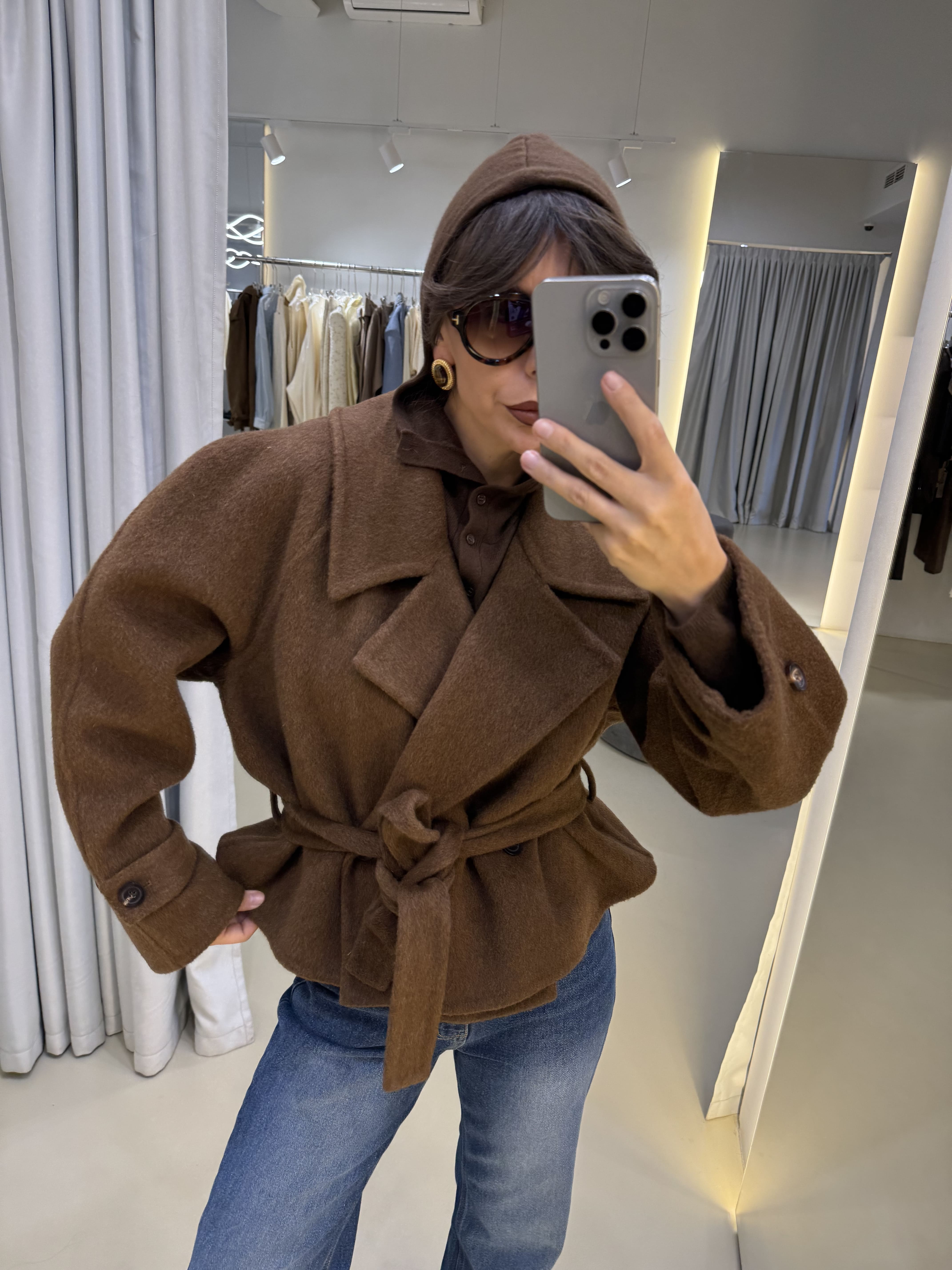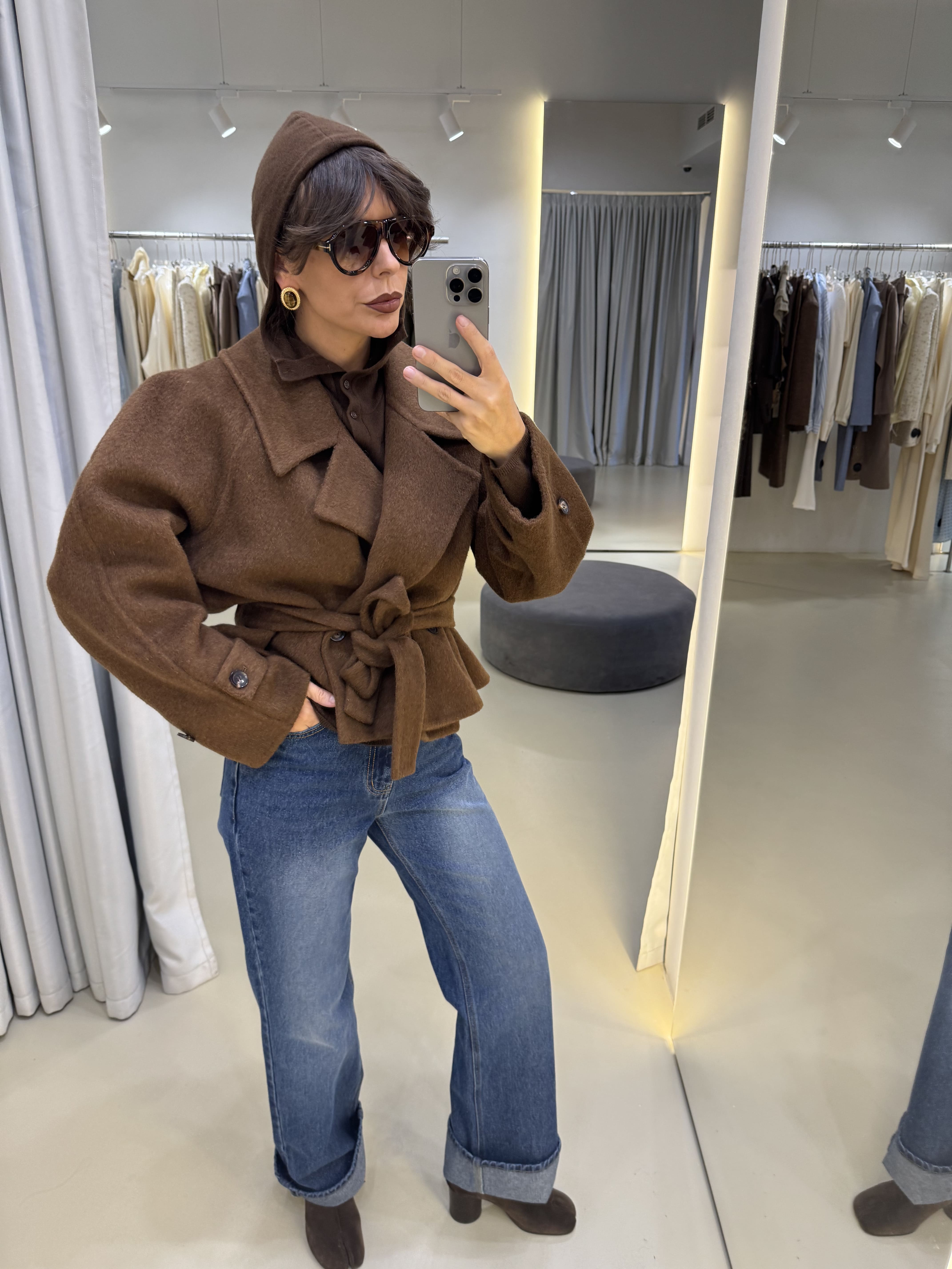 Пальто укороченное old money в коричневом цвете.