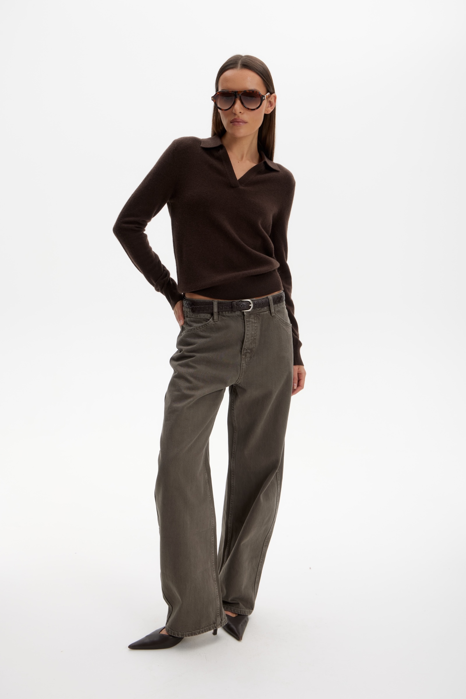 Джинсы brown с ремнем в коричневом цвете.
