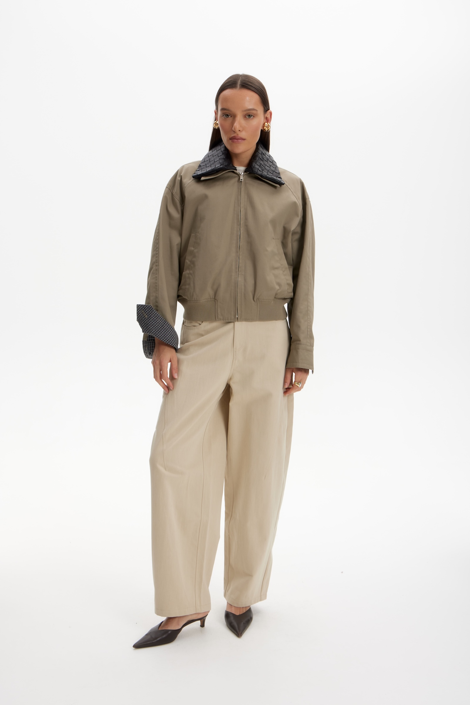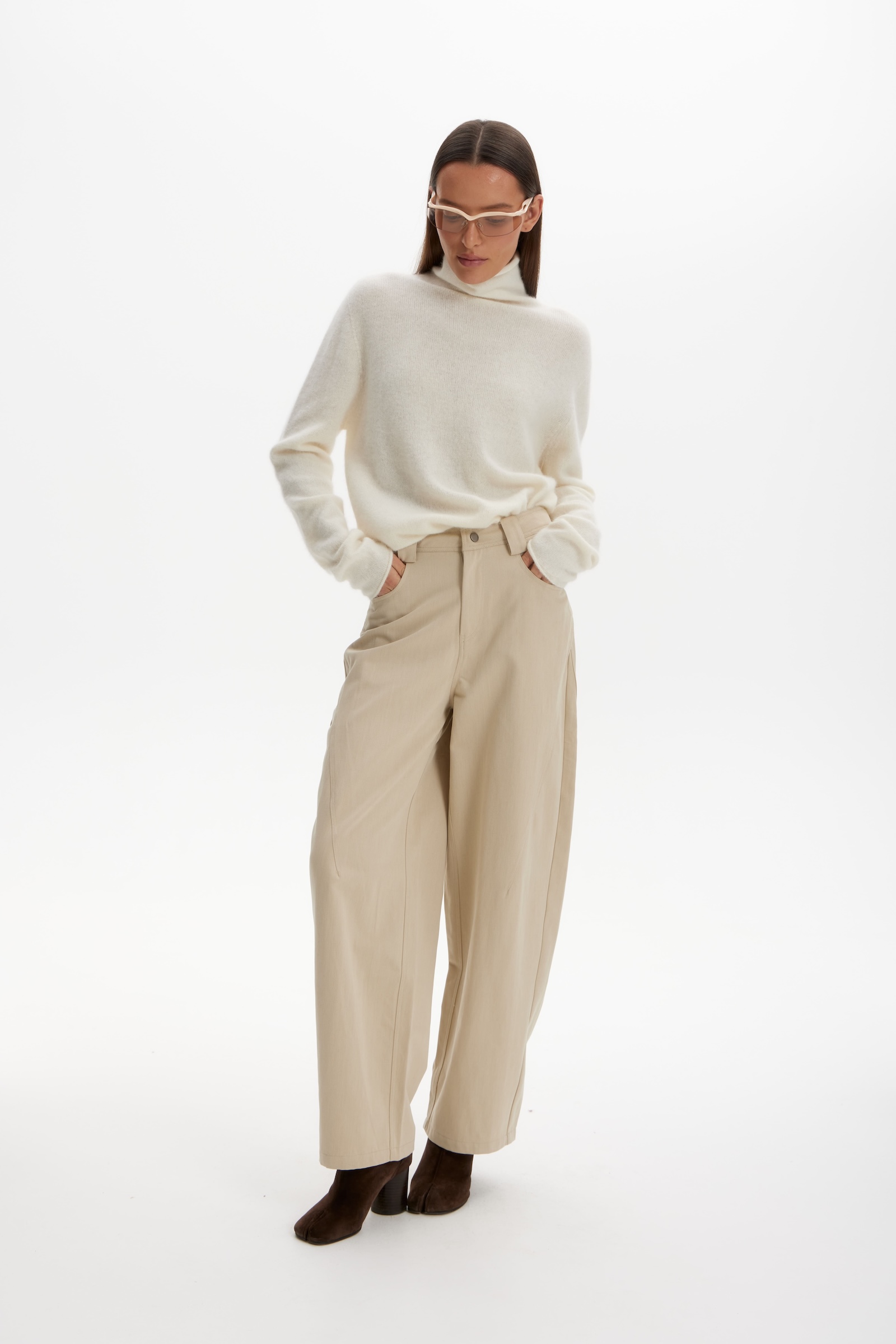 Брюки over в бежевом цвете.