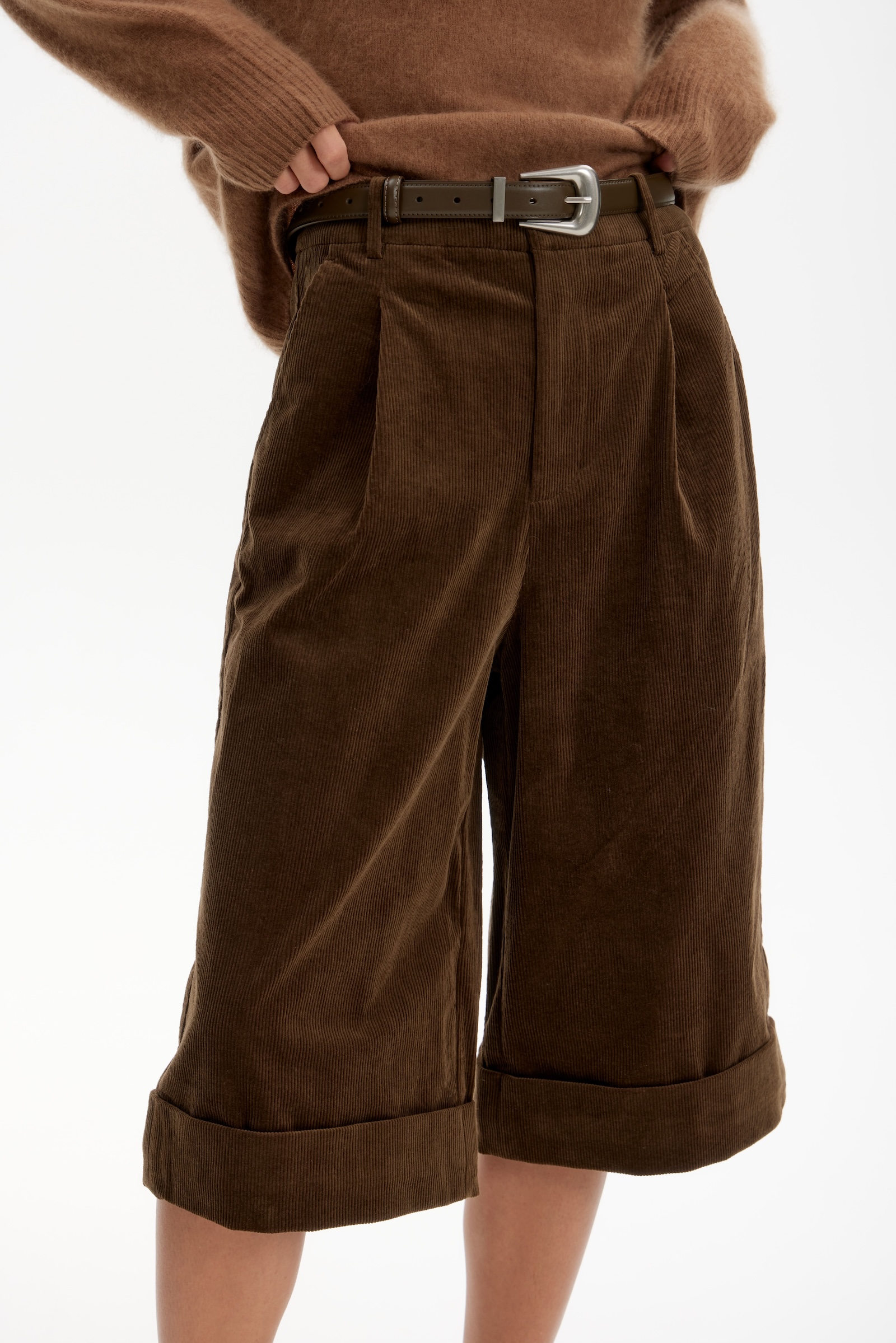 Бермуды вельветовые с ремнем в коричневом цвете.