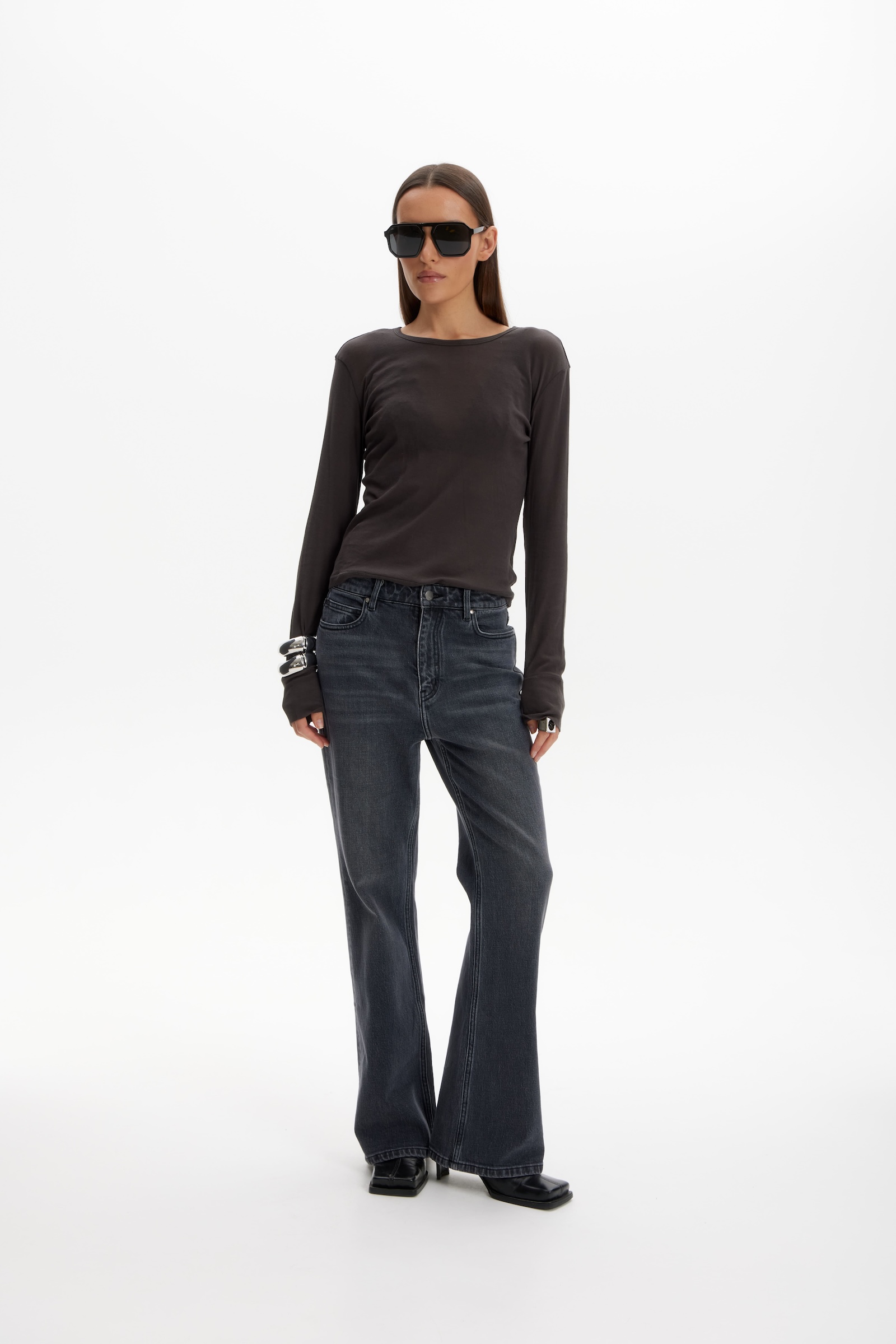 Джинсы клеш classic в черном цвете.