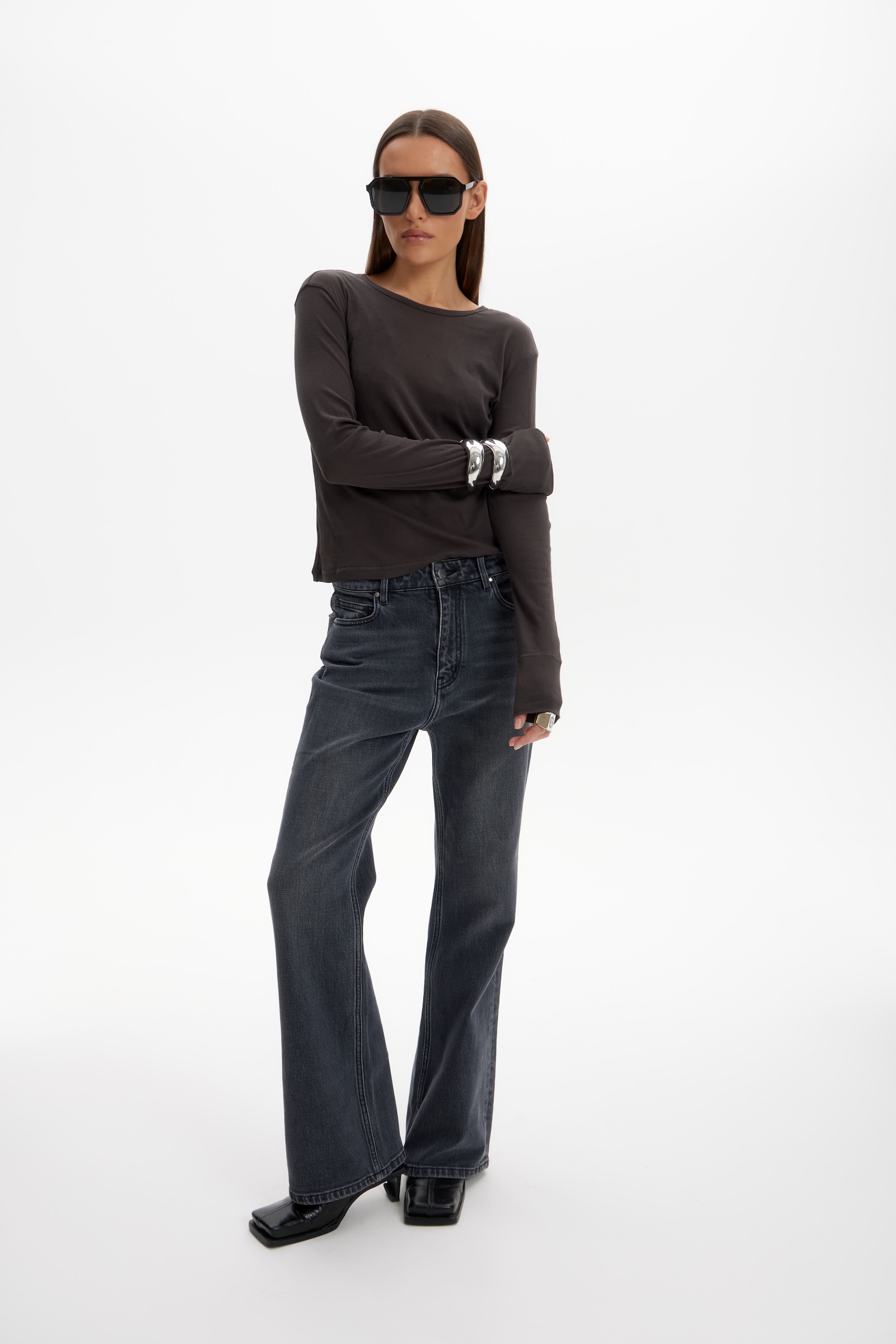 Джинсы клеш classic в черном цвете.