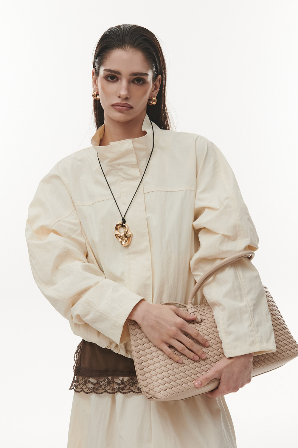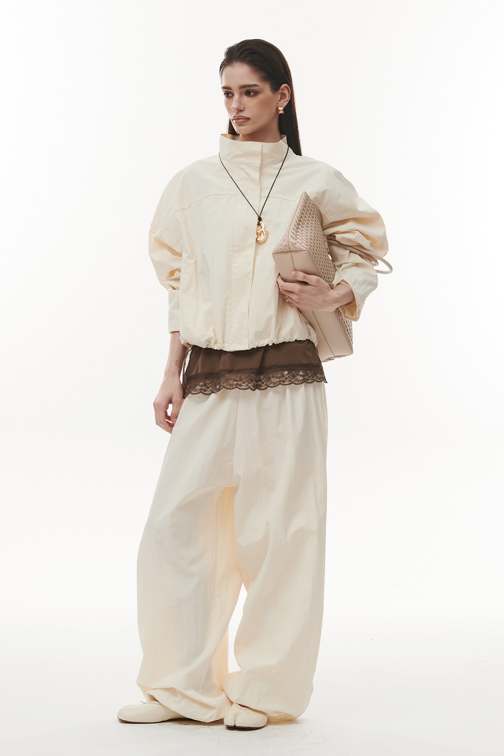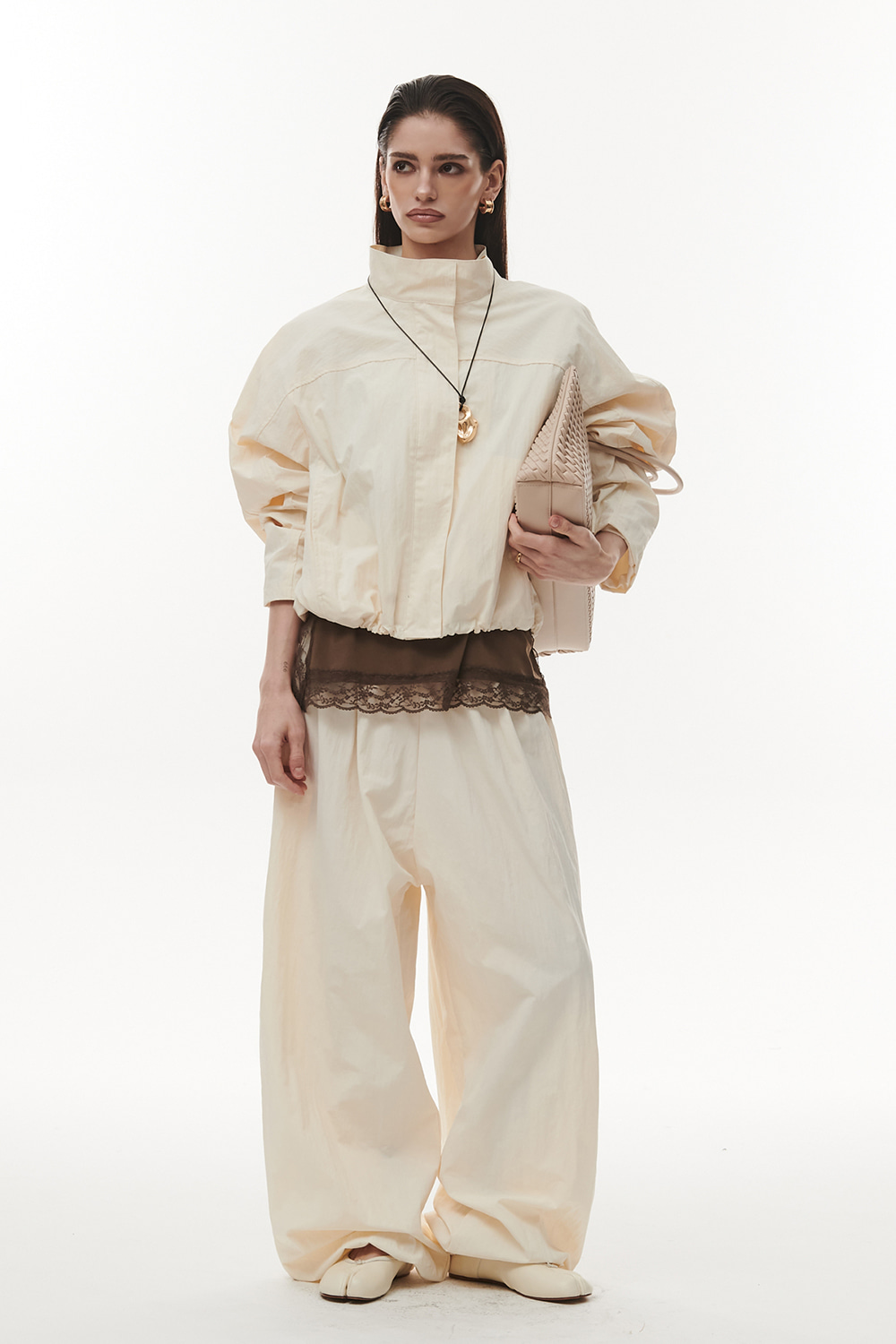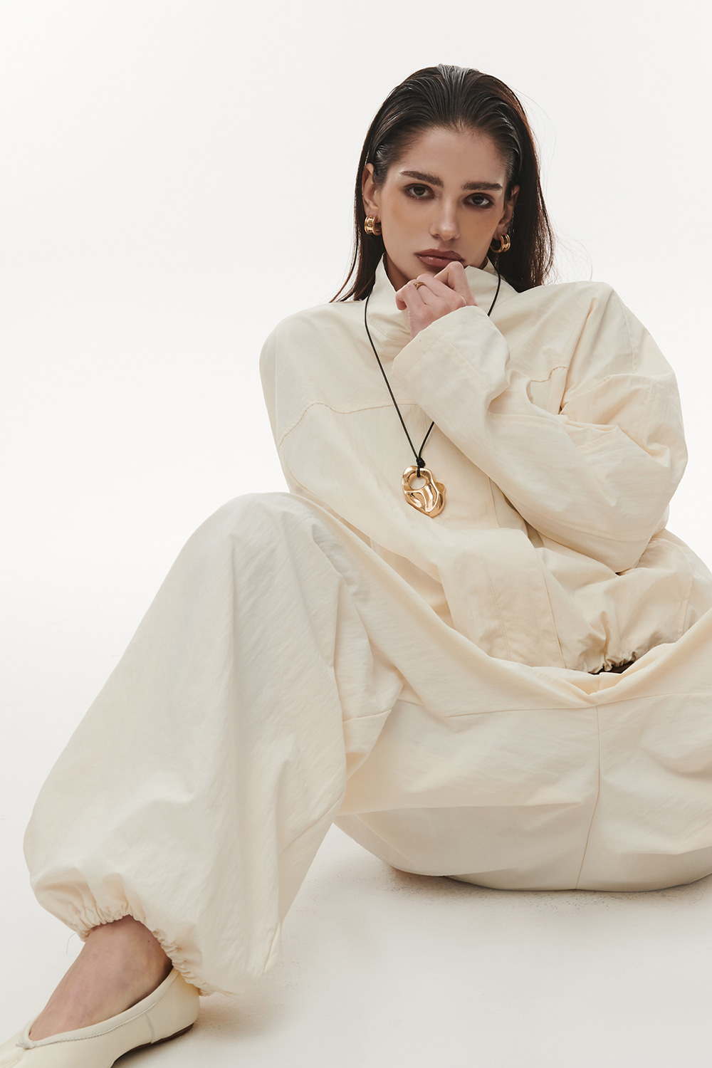 Комплект ветровка с брюками в молочном цвете.