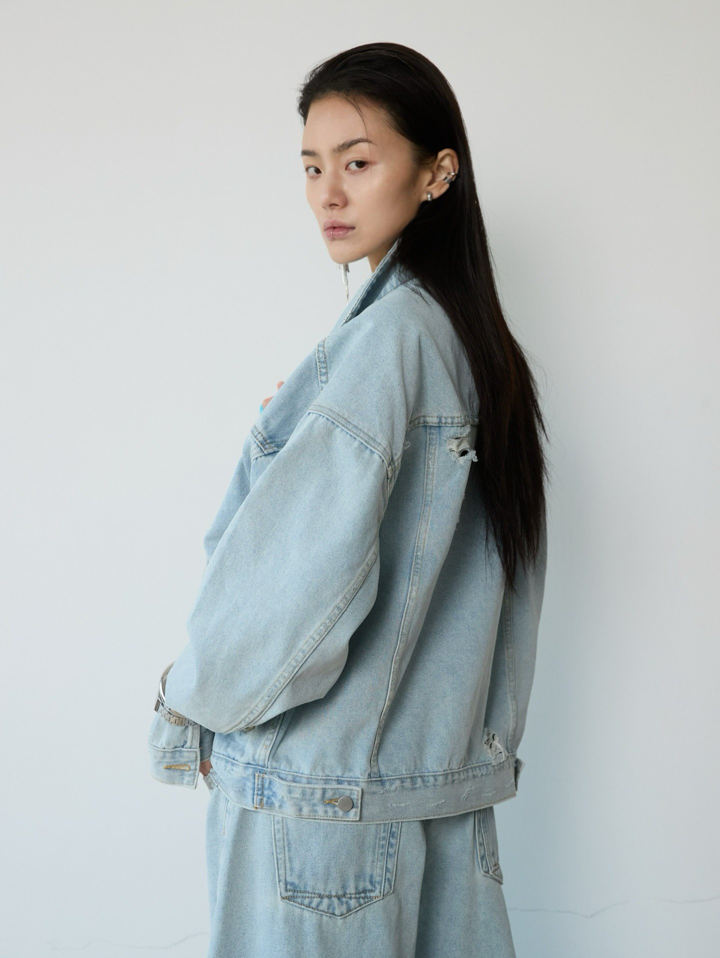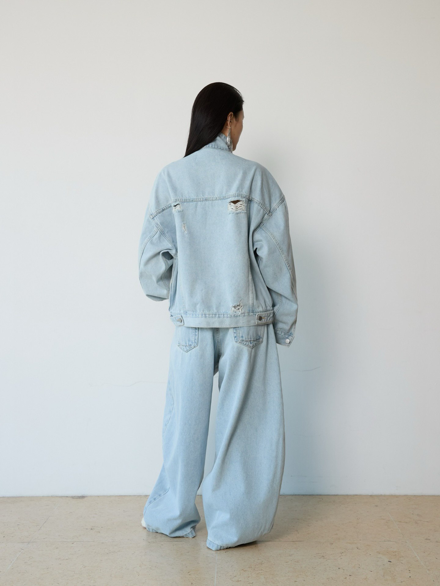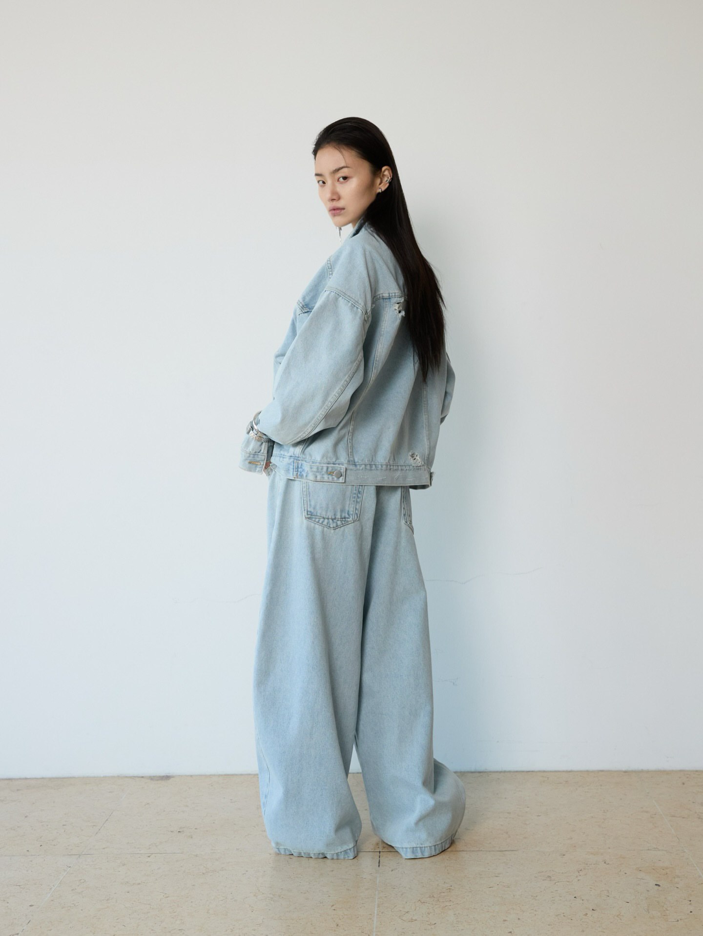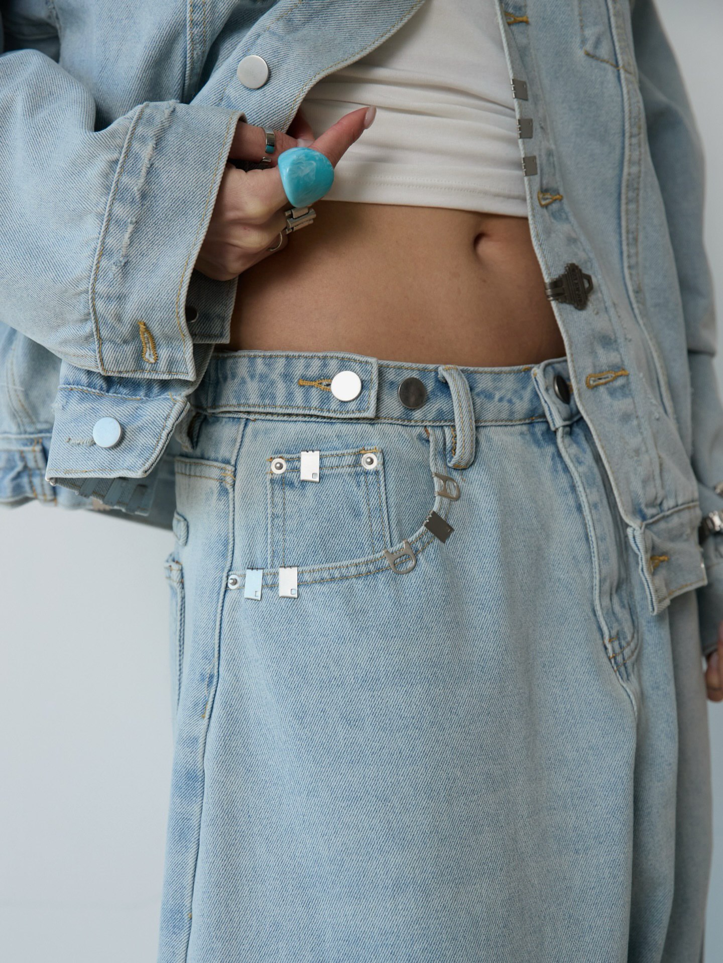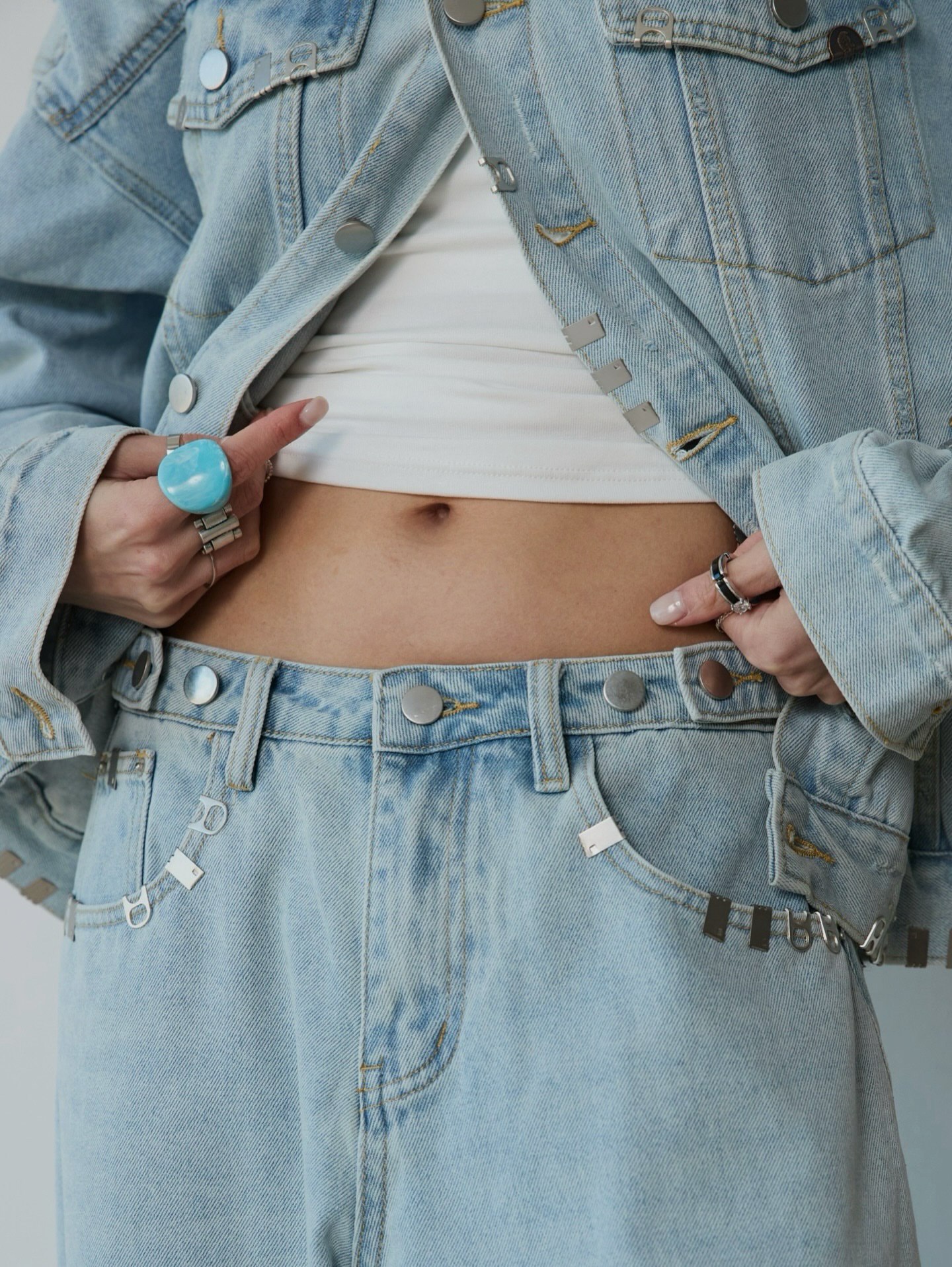 Джинсы с клепками в голубом цвете. С возможностью регулировки талии.