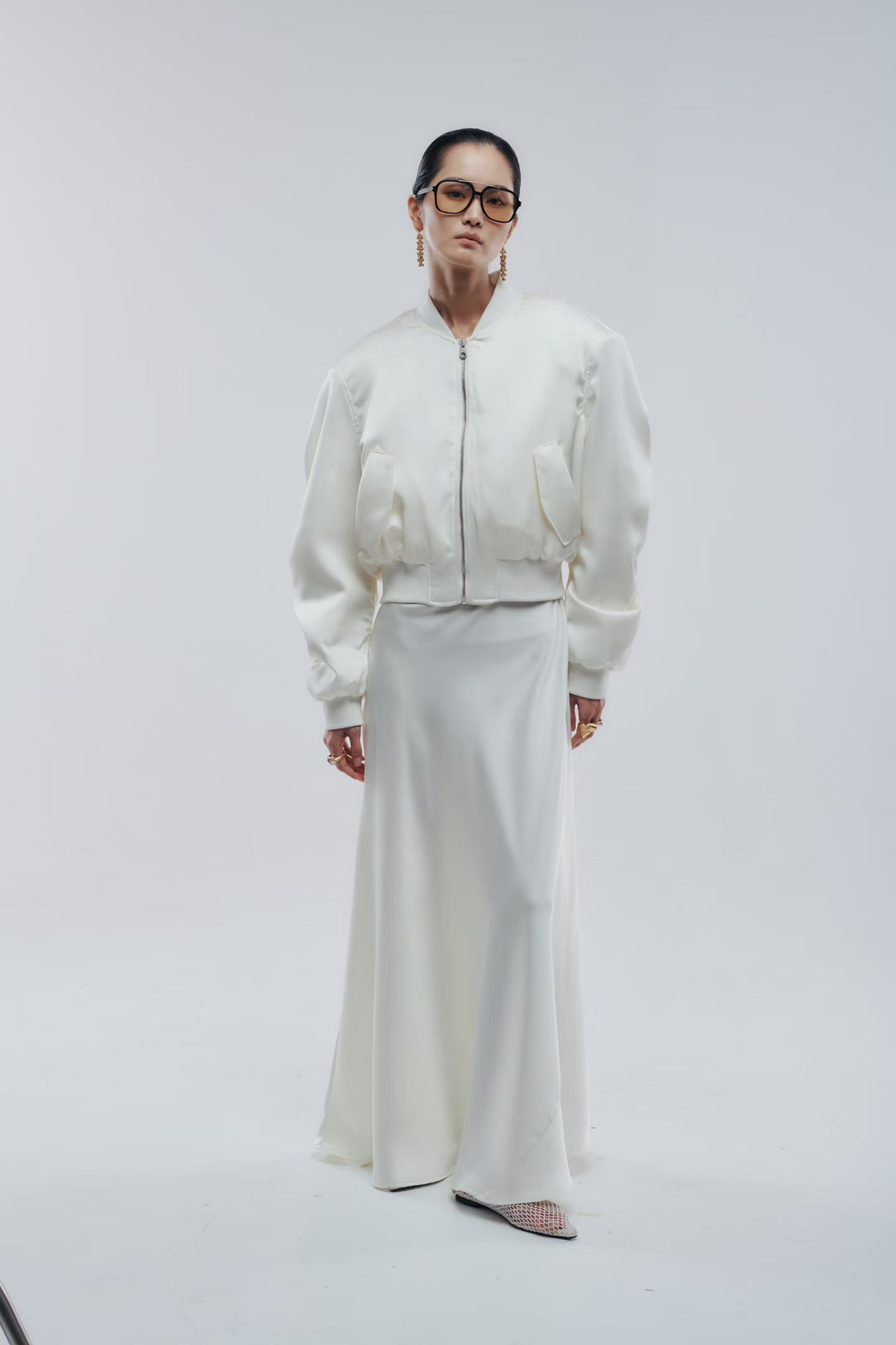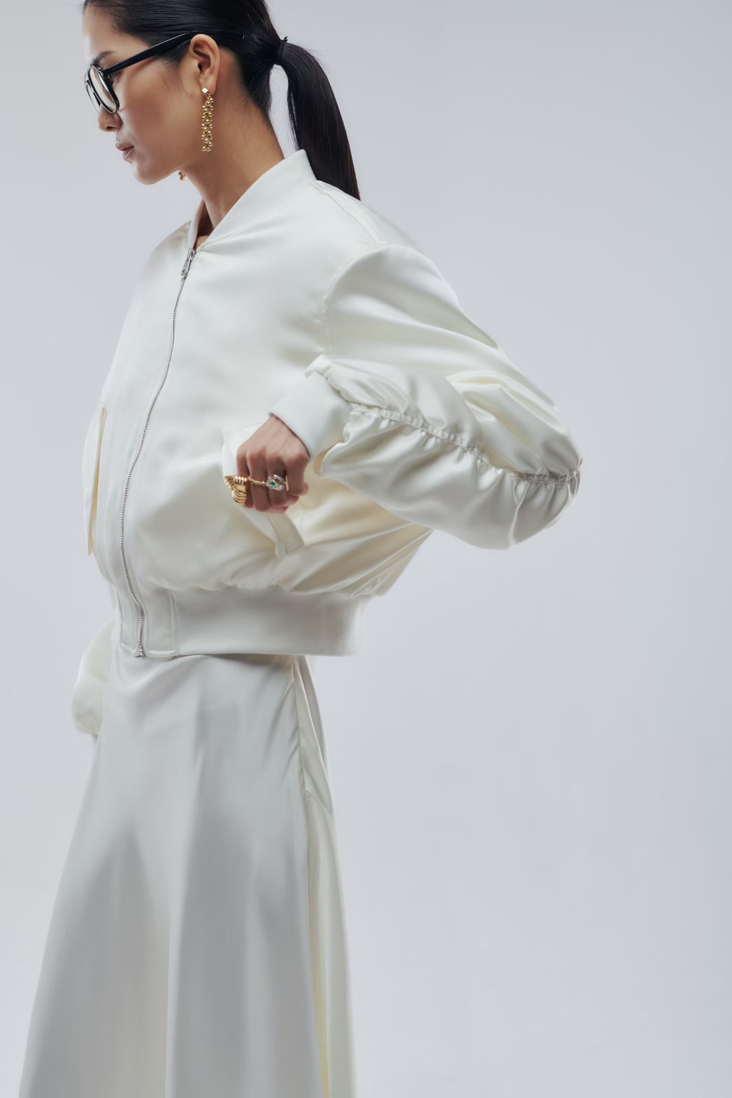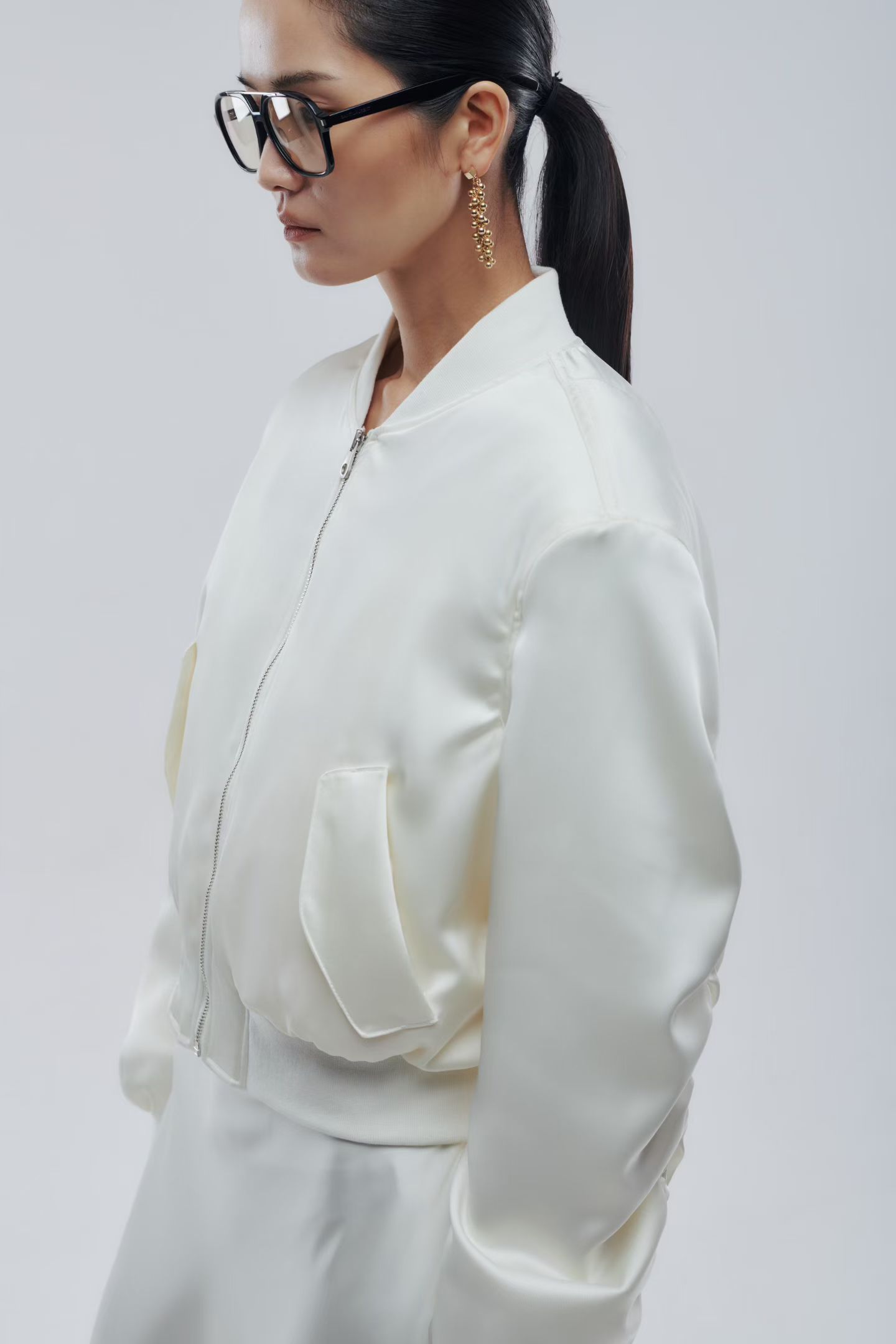 Бомбер атласный в молочном цвете.