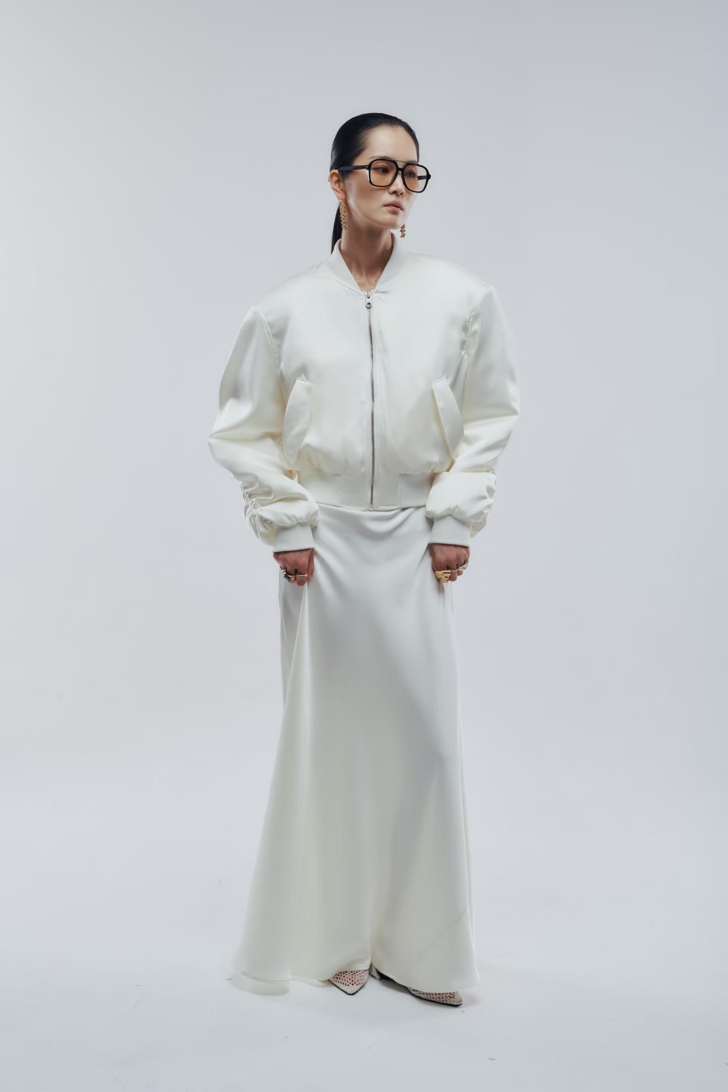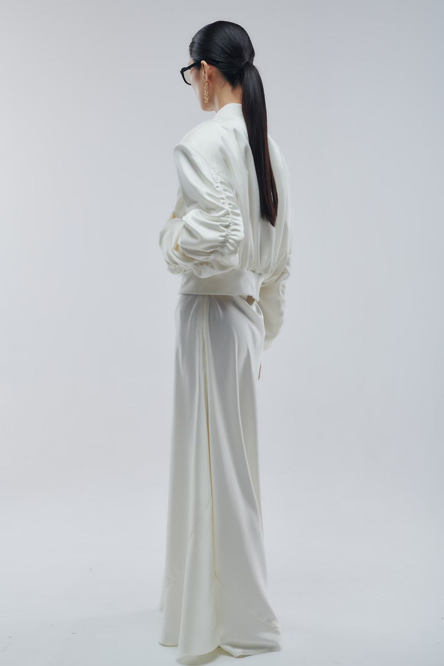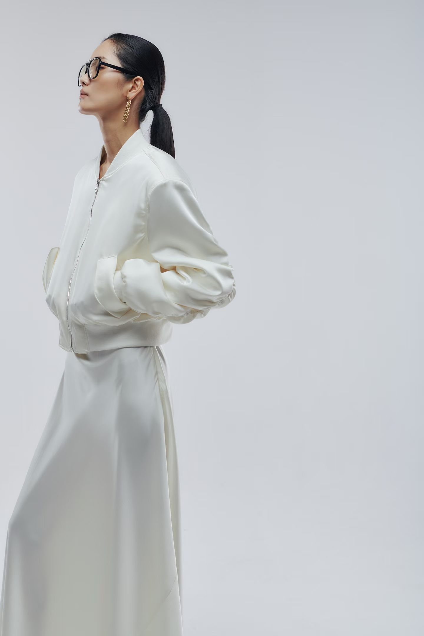 Бомбер атласный в молочном цвете.