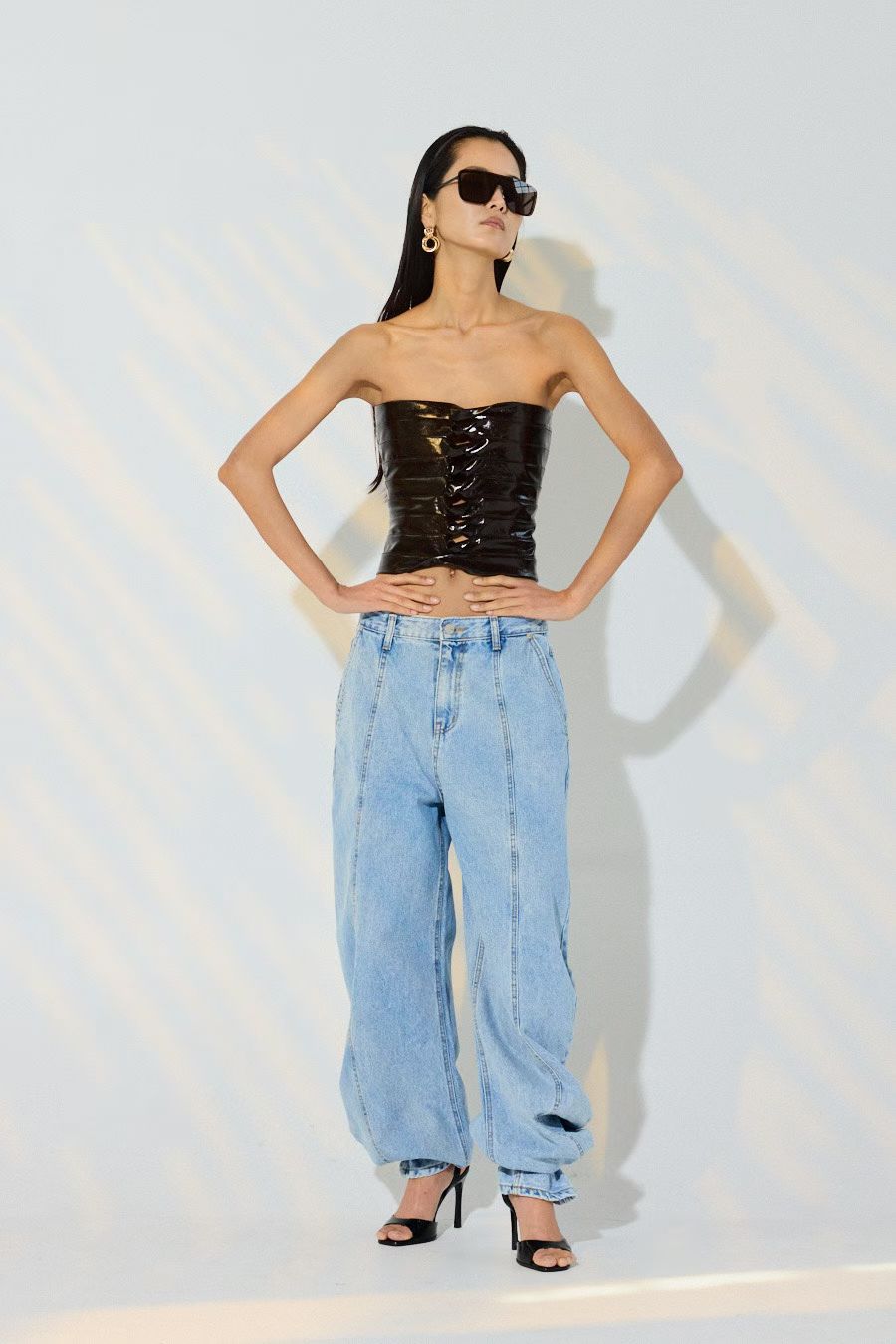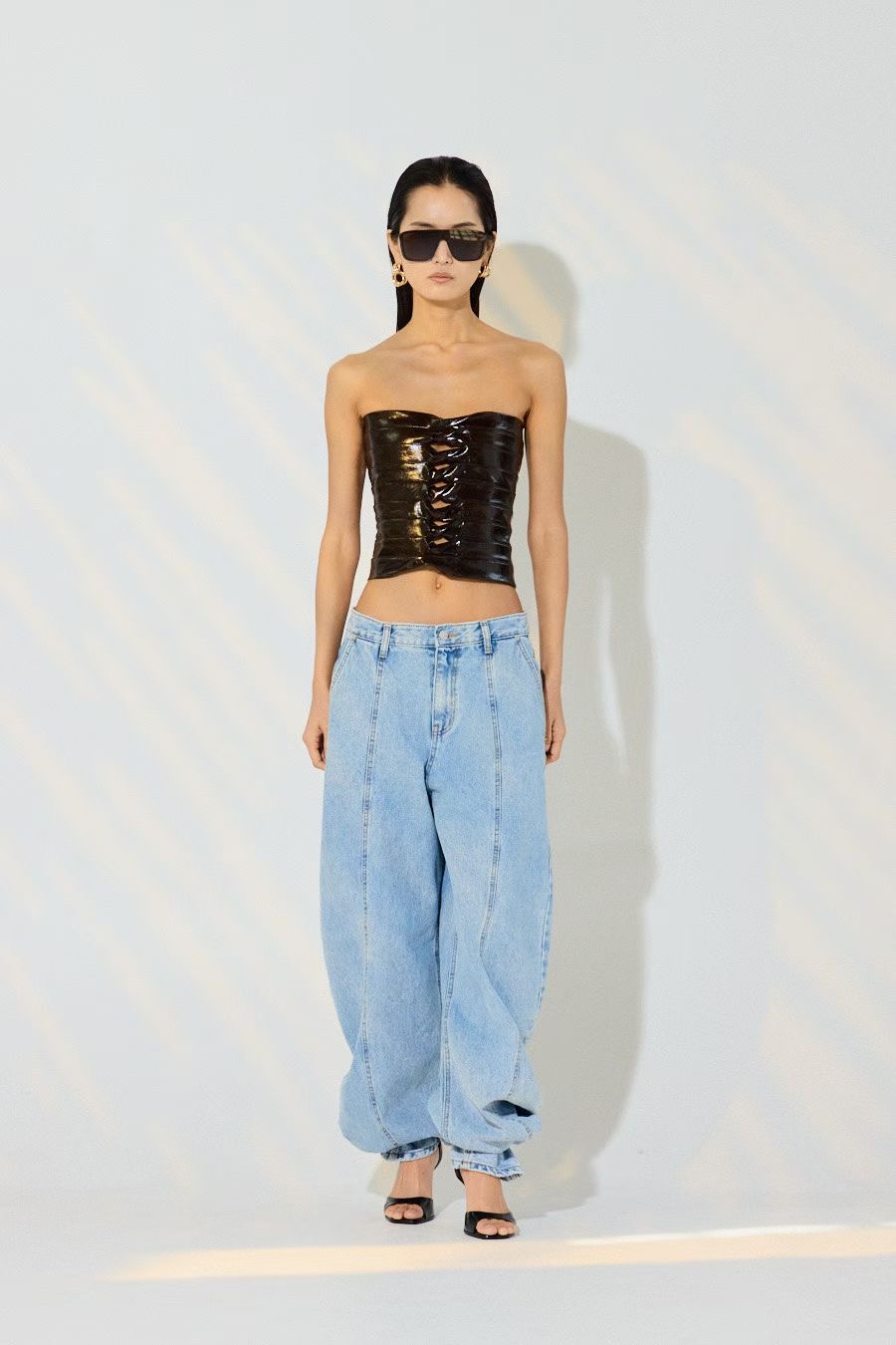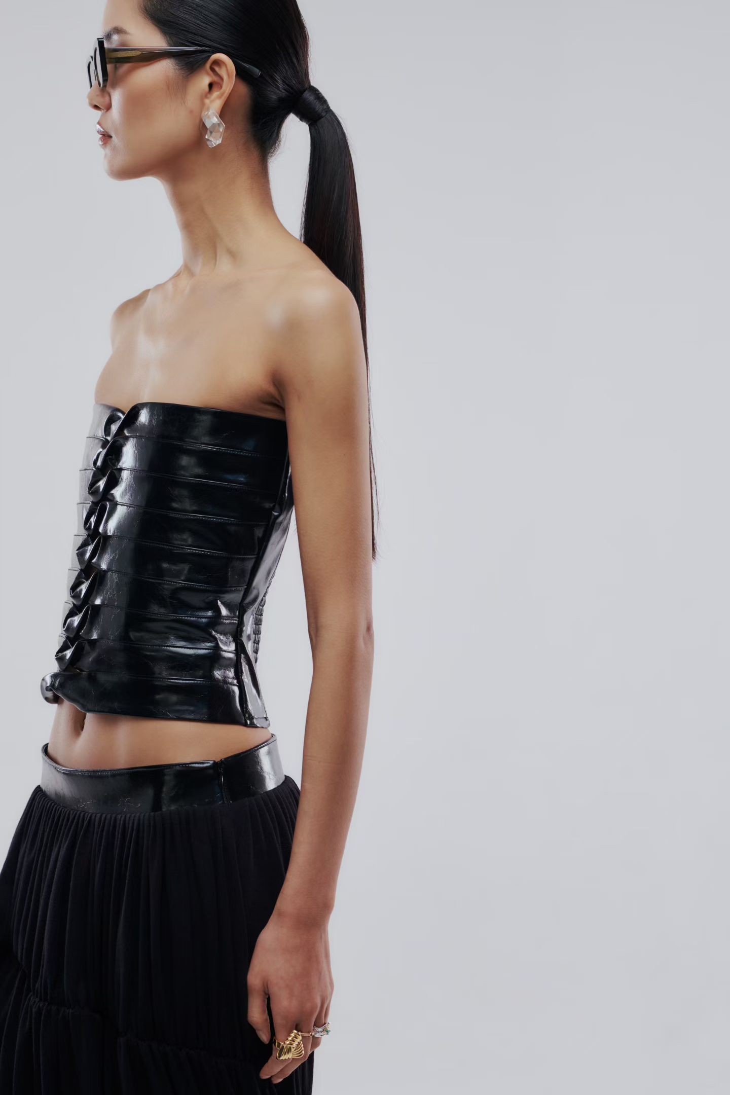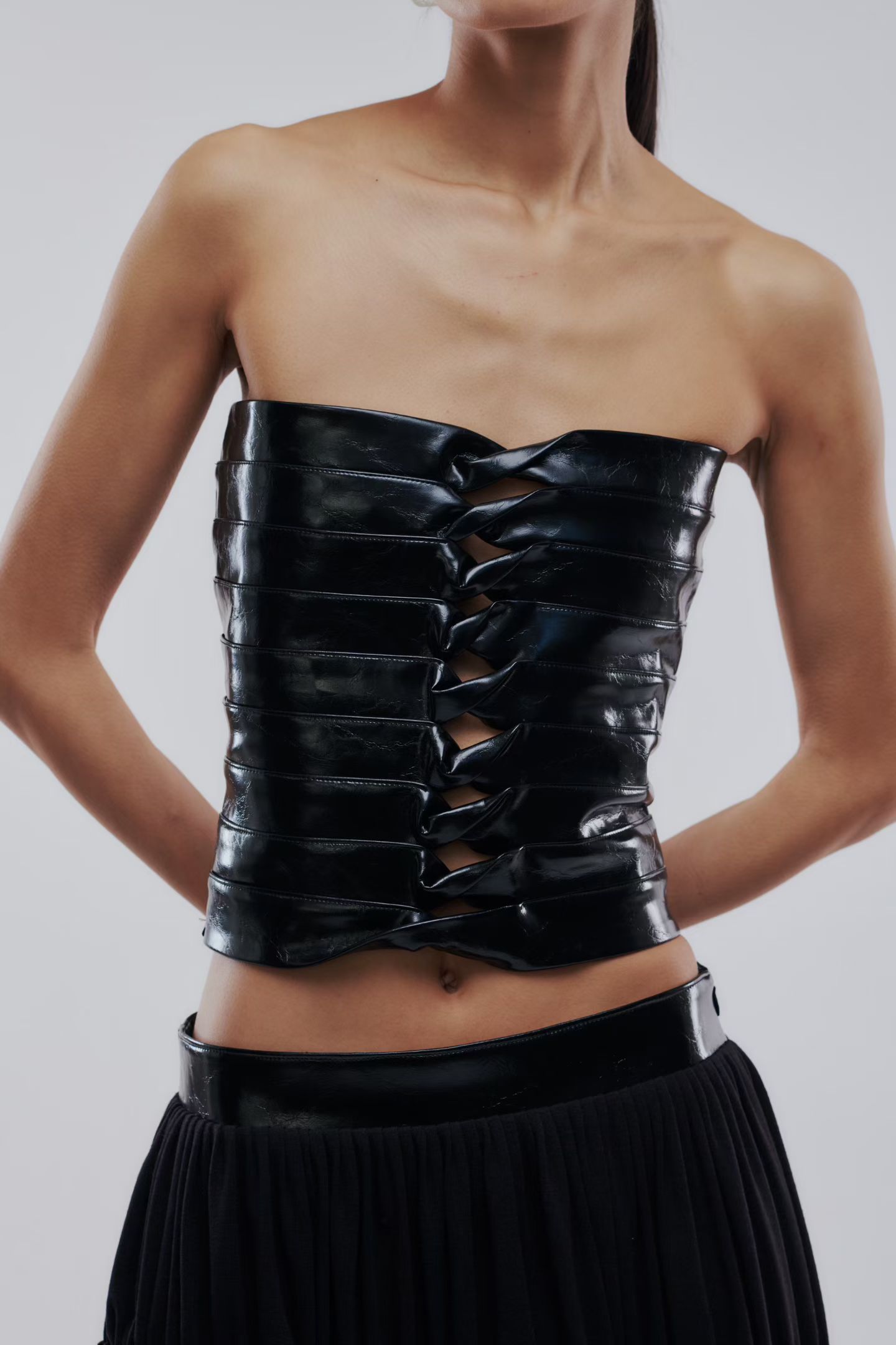 Топ лакированный в черном цвете.